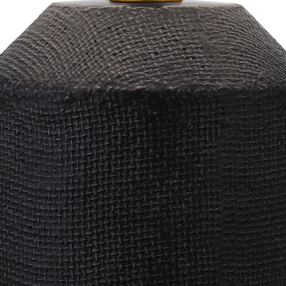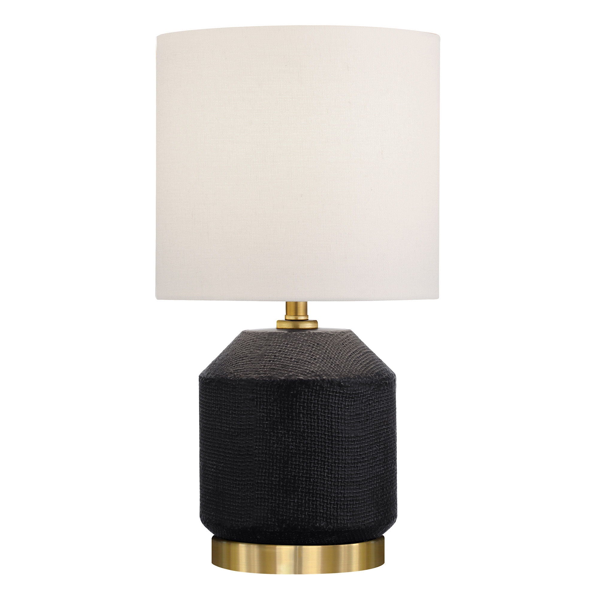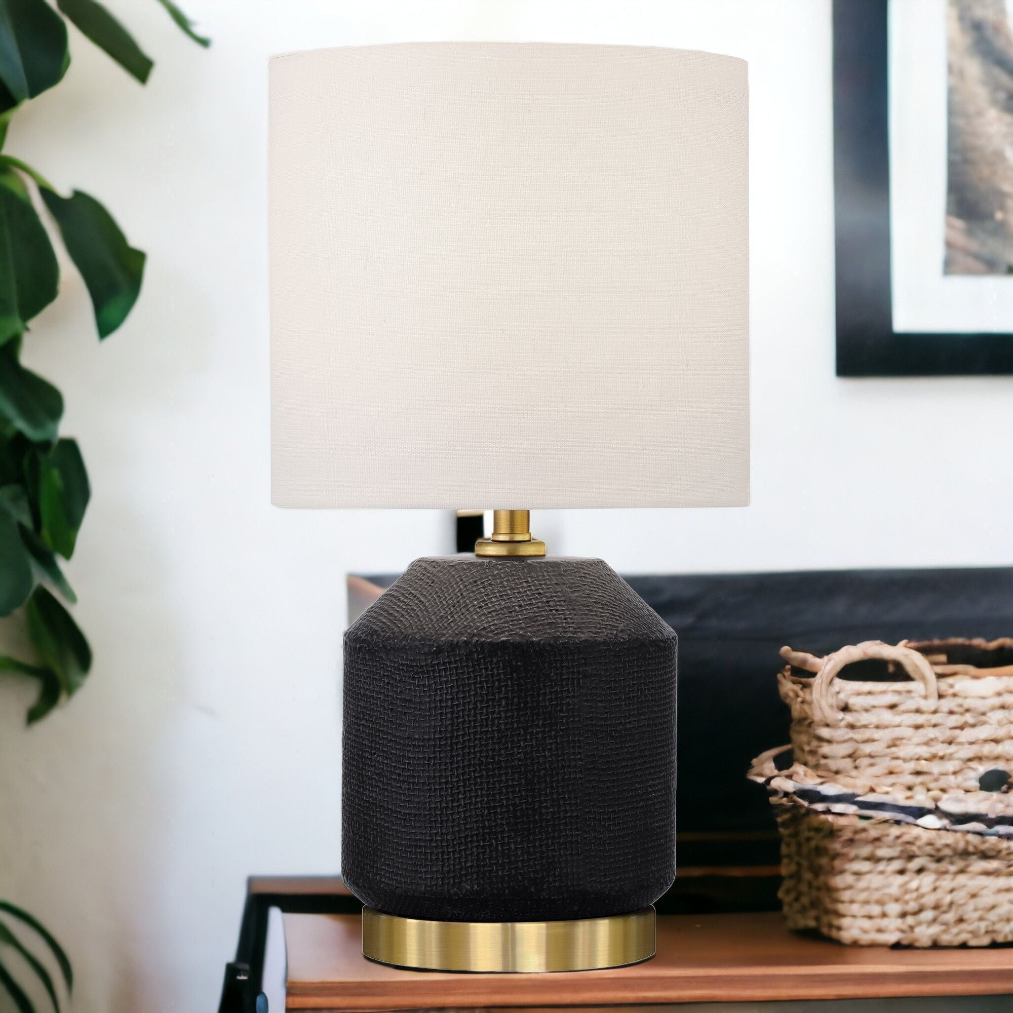 15" Ceramic Cylinder Table Lamp With White Drum Shade - Black And Gold
