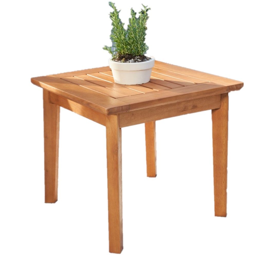 A must-have for anyone who loves to spend time outside. Whether you're hosting a summer barbecue, lounging by the pool, or just enjoying a sunny afternoon, this 20-inch natural square solid wood outdoor side table is the perfect addition to your outdoor setup. This side table is the perfect companion to your favorite yard chair. Ideal for outdoor dining, the natural solid wood tabletop will be a beautiful addition to your outdoor space. This quadratic outdoor table has clean lines and plenty of surface area. Perfect for entertaining guests or just relaxing with family, our table is the ultimate addition to your backyard. 18-inch H x 20-inch W x 20-inch D