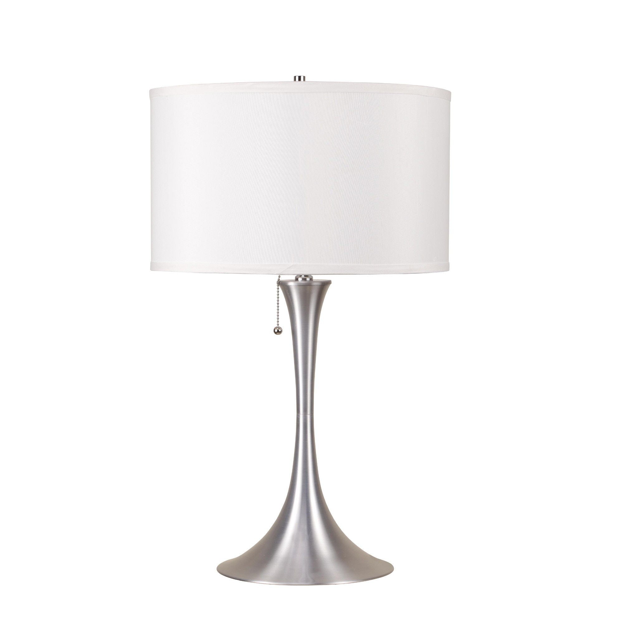 28" Metal Bedside Table Lamp With White Shade - Silver
