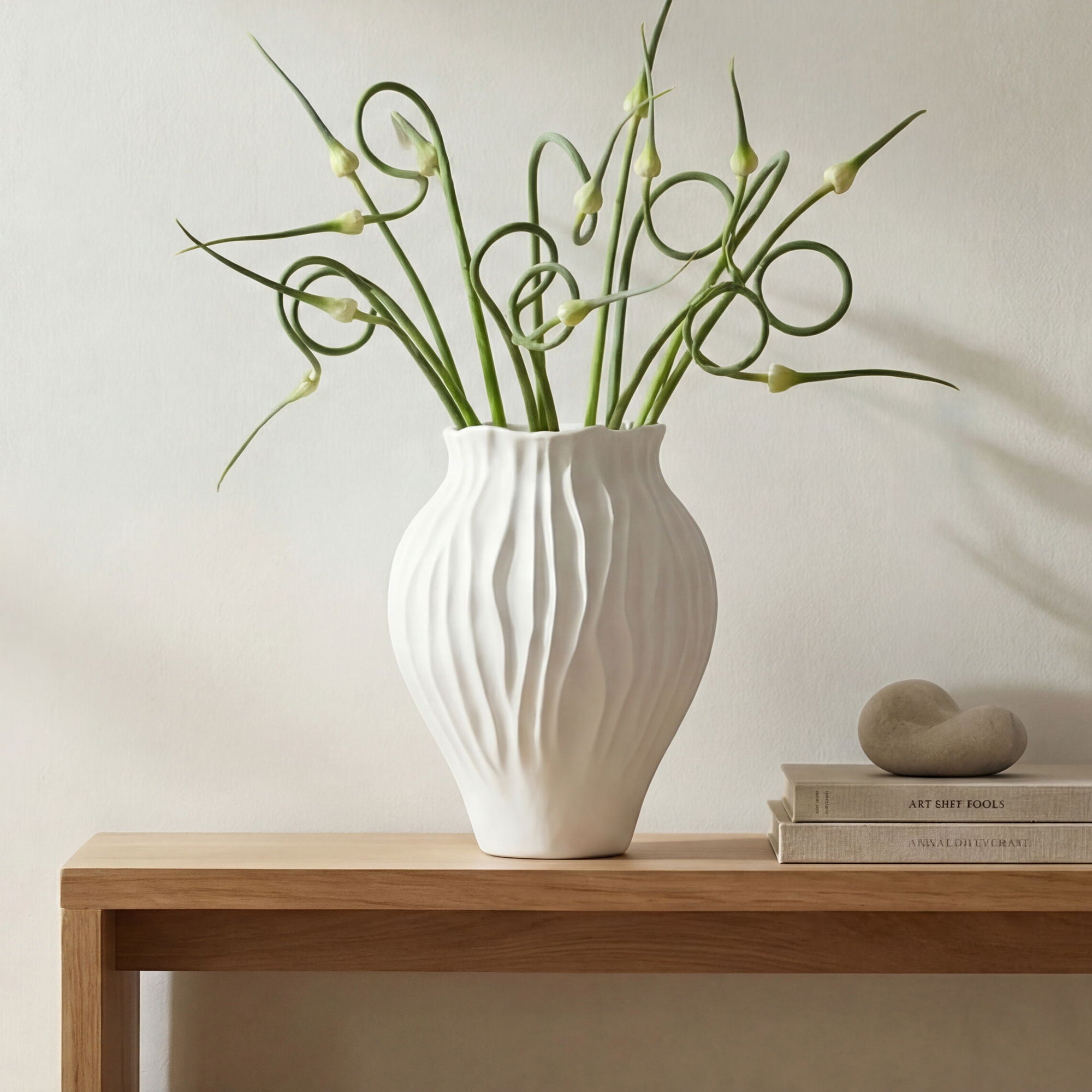 - Textured Ripple Finish: A rippled surface adds depth and visual interest, giving the white finish extra dimension even in monochrome, minimal styling.