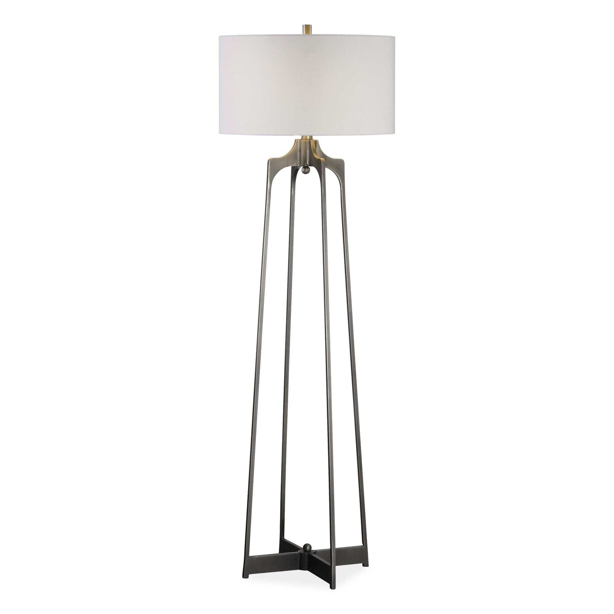 Sleek And Refined, This Lamp Is Constructed Of Forged Steel, Finished In A Plated Aged Gun Metal. The Round Hardback Drum Shade Is A White Linen Fabric With Natural Slubbing.