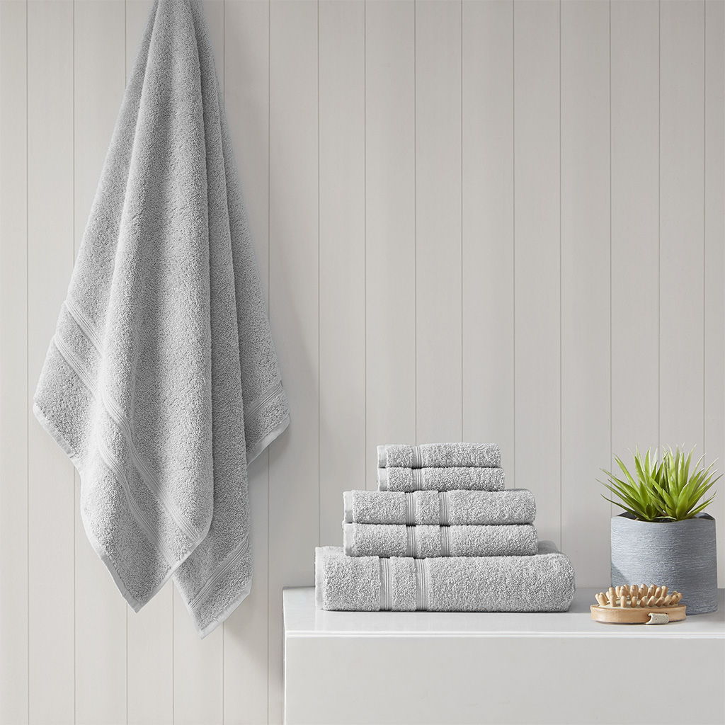 Dry off with the bliss comfort of our 510 Design Aegean 100% Turkish Cotton 6 Piece Towel Set. Made from 100% Turkish cotton, these towels are constructed in 500gsm weight to create a light and soft feel, while absorbent and quick dry at the same time. These towels are also finished with a SILVADUR™ antimicrobial treatment providing built in freshness protection, inhibiting growth of odor causing bacteria, and keeping linen newer, longer. In addition, these towels are also Made in Green by OEKO-TEX certified, meaning it does not contain any harmful substances or chemicals while also using sustainable processes and socially responsible working conditions, for the best in wellness and well-being. Each towel is also finished with a dobby border for a stylish touch and is machine washable for easy care. Set includes: 2 Bath Towels 27"x52", 2 Hand Towels 16"x30", and 2 Wash Towels 13"x13".