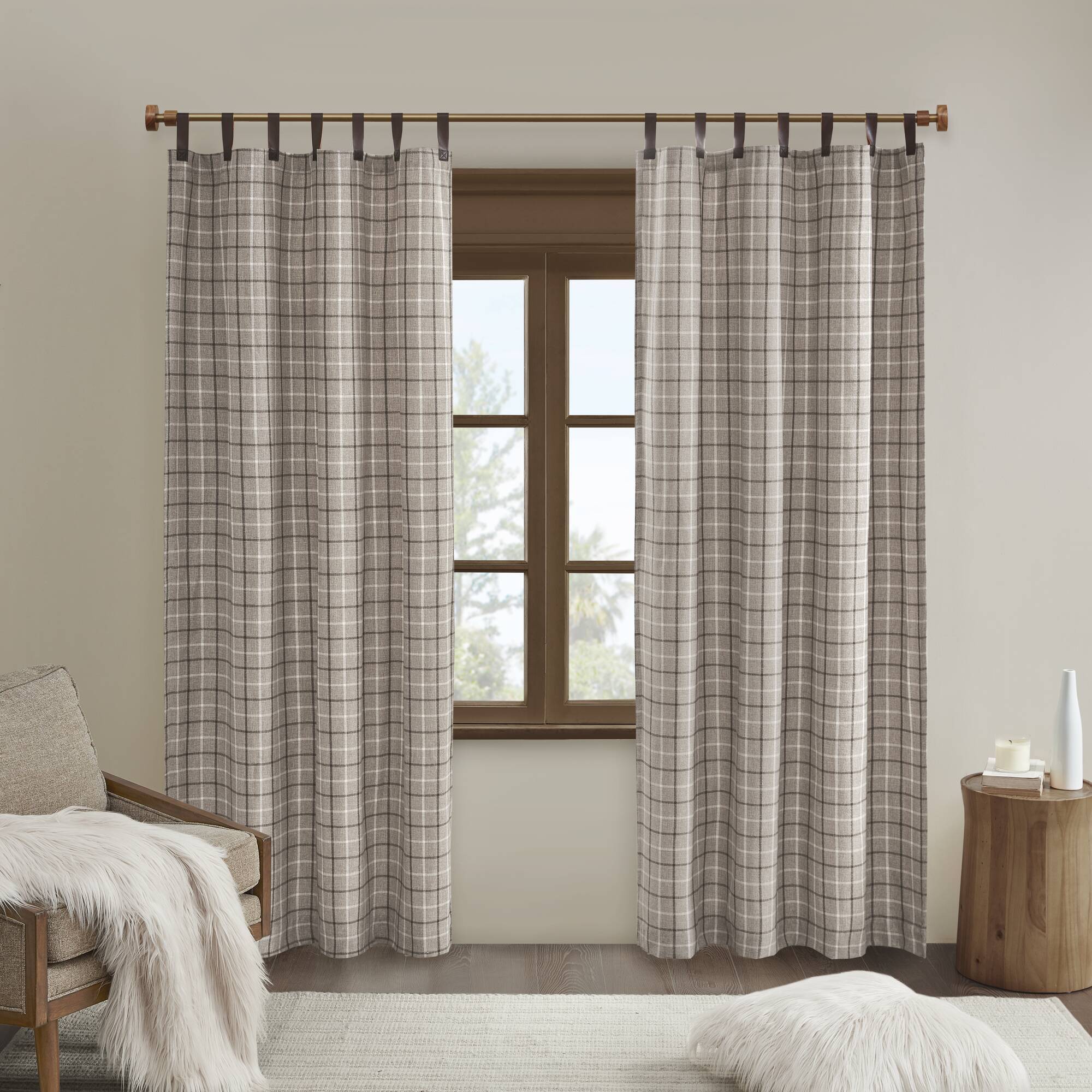 Anaheim - 50"x 95" Plaid Faux Leather Tab Top Curtain Panel With Fleece Lining - Brown