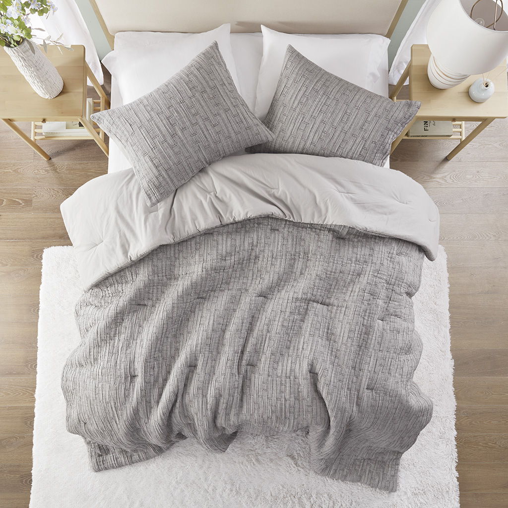 Arlo - 3 Piece Full/Queen Oversized Comforter Set - Charcoal