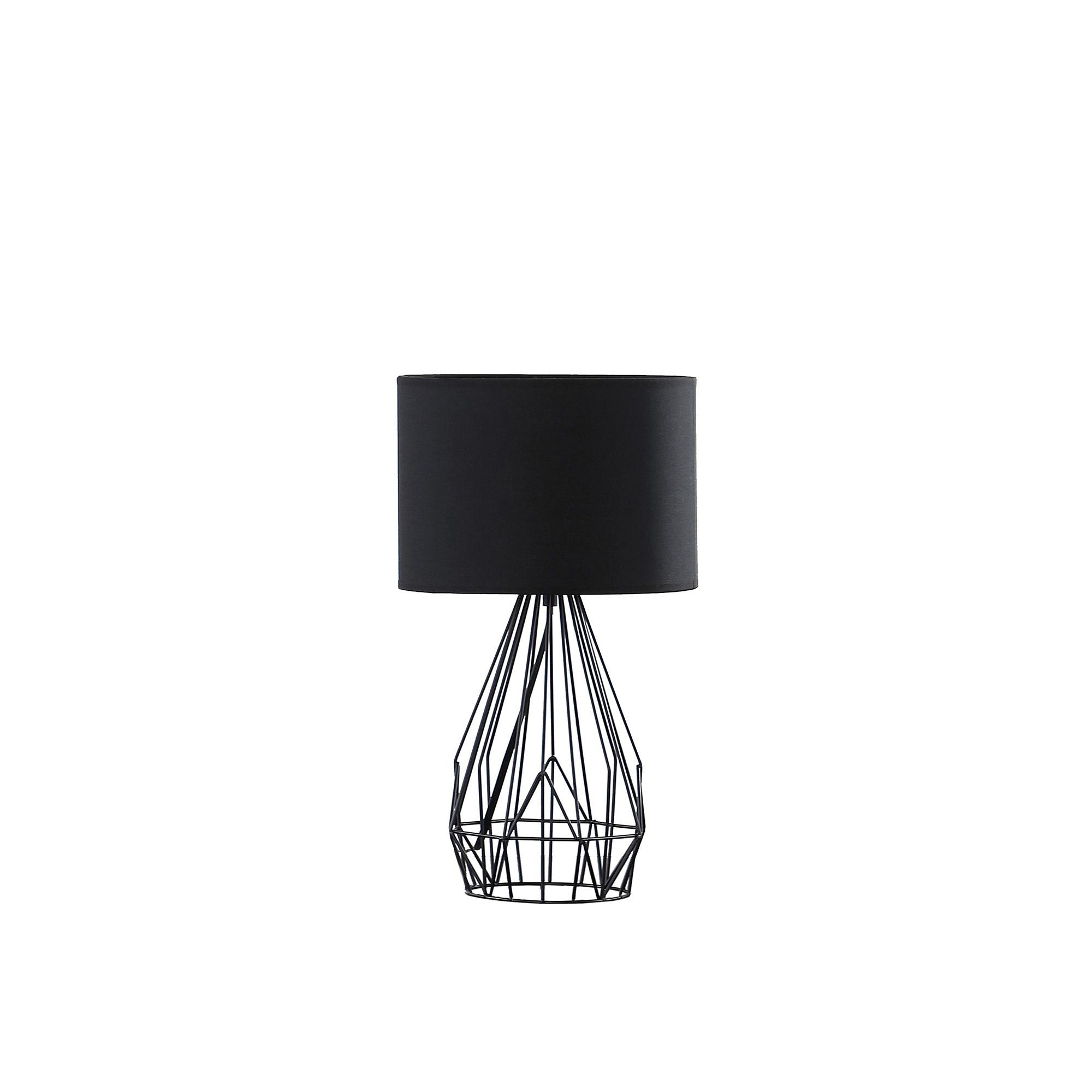 With its modern and industrial style, this 18” Asymmetric Black Cage Metal Table Lamp is the perfect lamp fixture to bring into your home. Made from high quality metal, this lamp features a classic drum shade and a black open cage body and base, made from slim metal rods. The lampshade also has a clean-lined smooth black fabric with a rose copper lining to diffuse light evenly. There is an easy to reach power switch on the attached chord, which makes it even more perfect for you. 17.5” x 9.75” x 9.75”