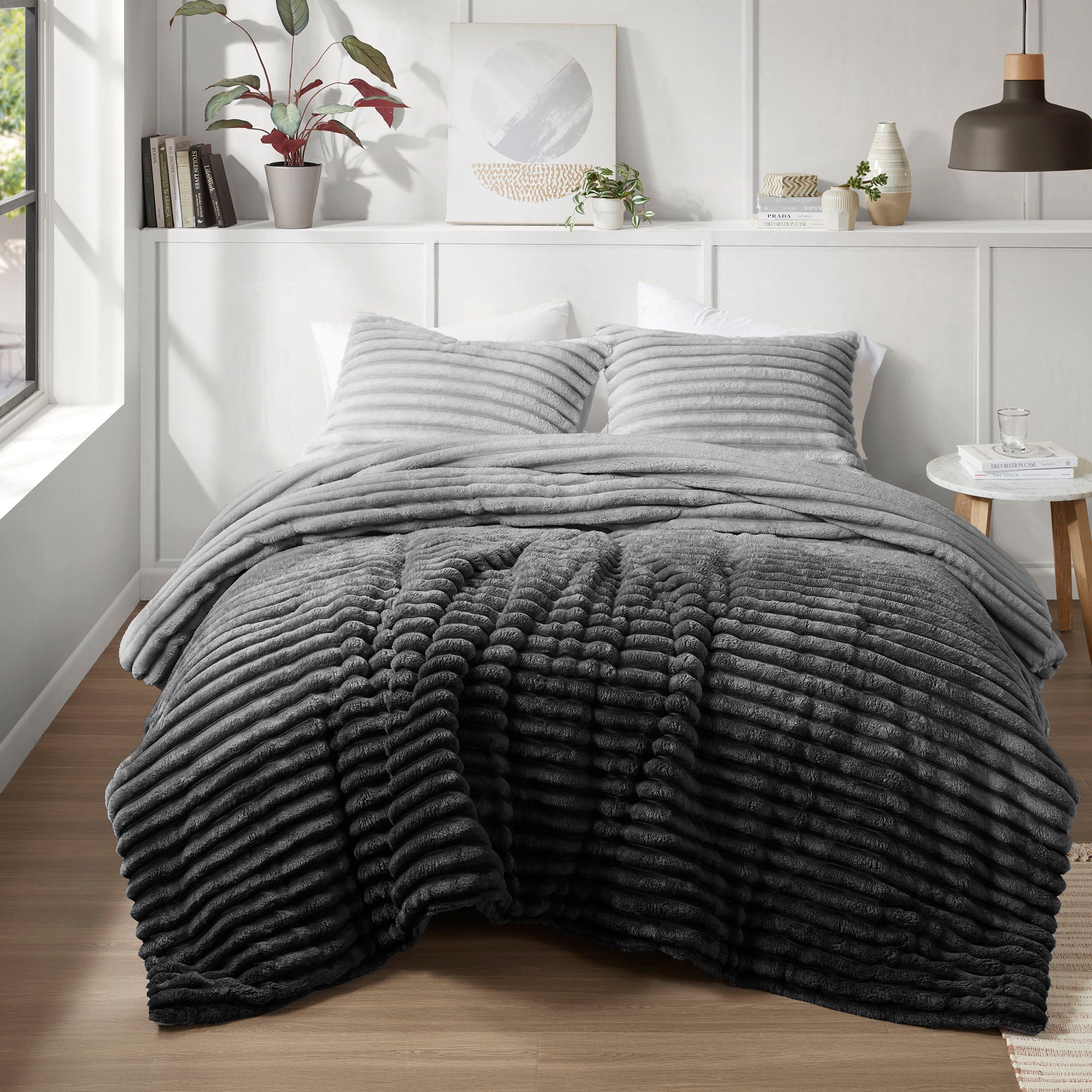 Avril - Twin/Twin Long Fluffy Ribbed Plush Comforter Set - Gray Ombre