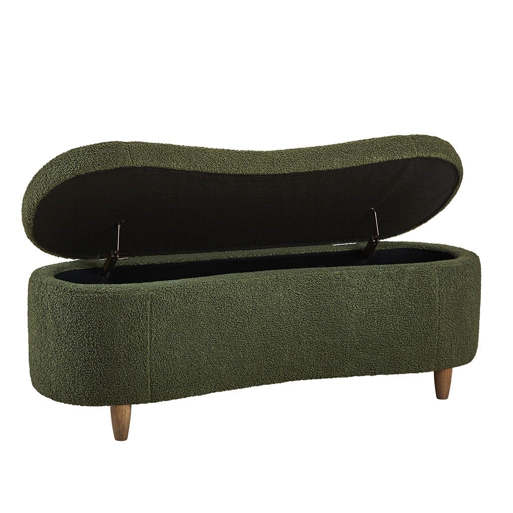 Bailey - Boucle Flip Top Storage Bench - Green