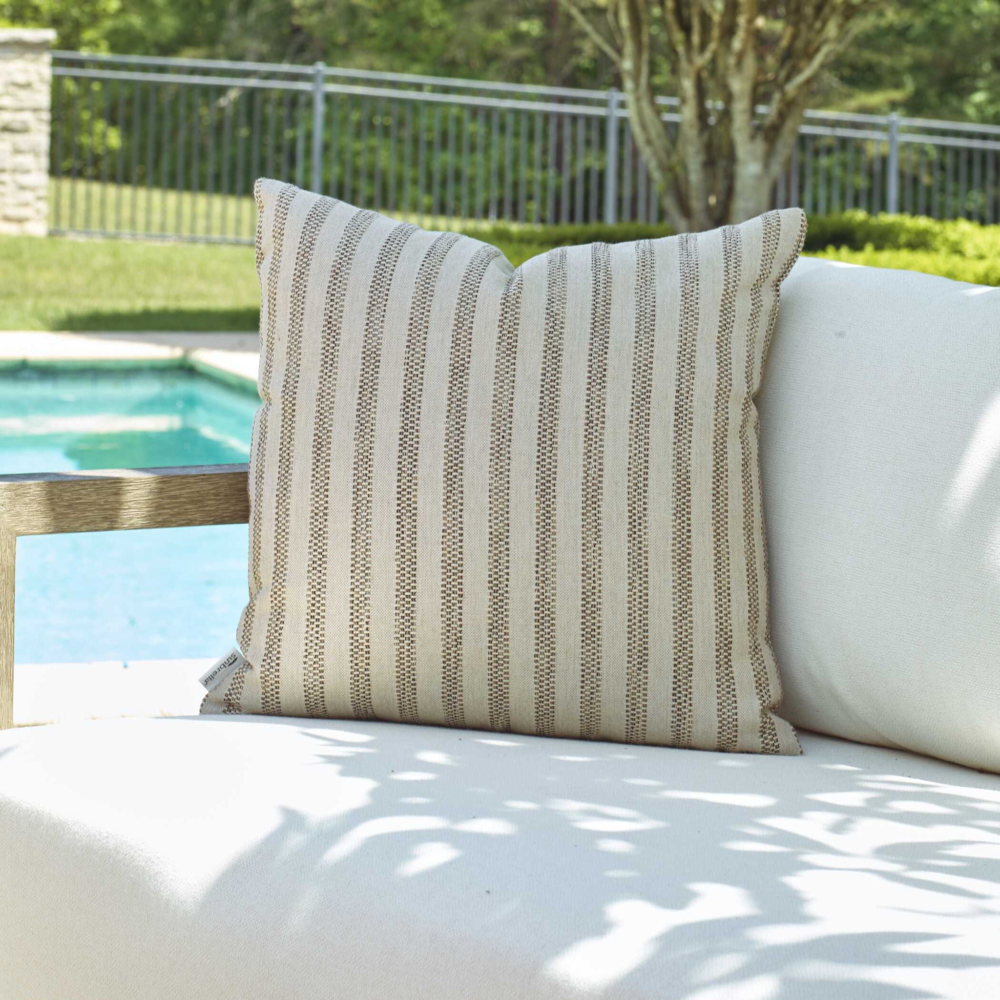 A Flax Ground Is Elevated With A Tonal Basketweave Stripe Resembling Rattan In Sunbrella Solution Dyed Acrylic. Complete With An Invisible Zipper And Filled With A Plush, Microdenier Polyester Inside A Water-resistant Casing. Made In The USA.