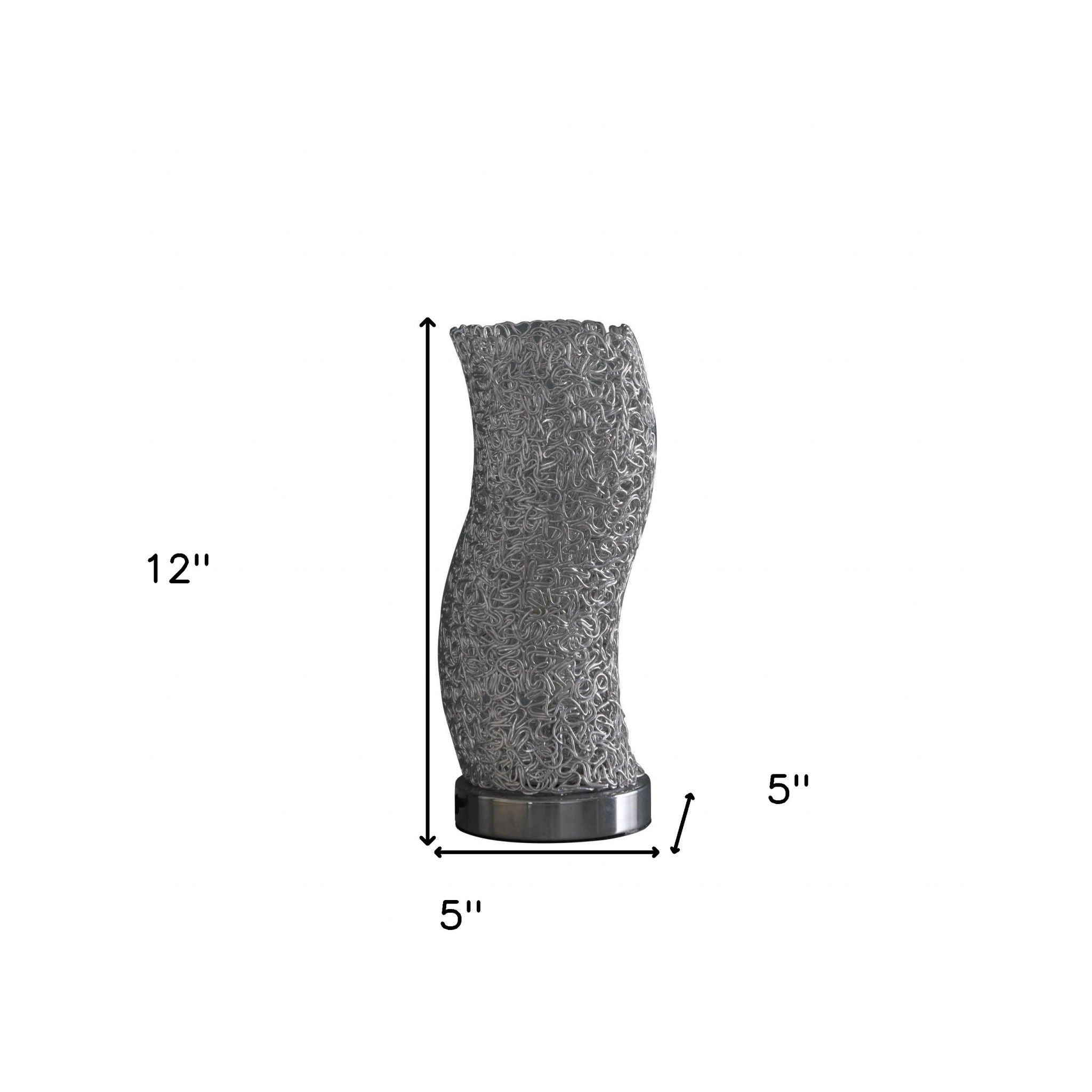 Bedside Table Lamp With Silver Swirl Novelty Shade - Silver