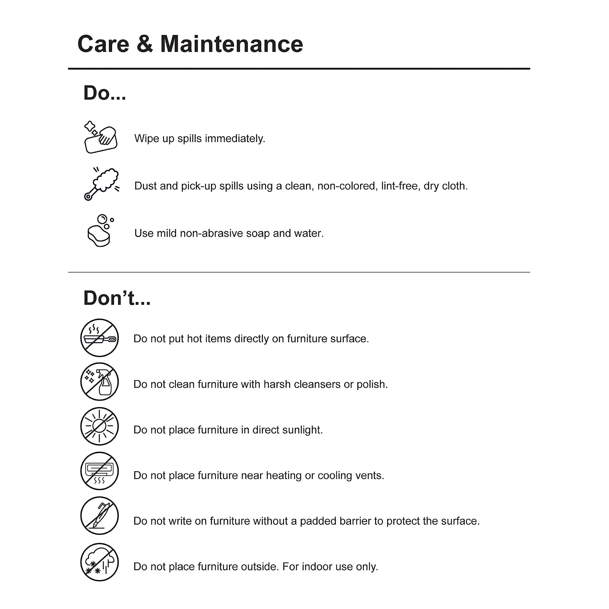 Do not use abrasive cleaner. Use of linens, coasters and trivets is recommended.