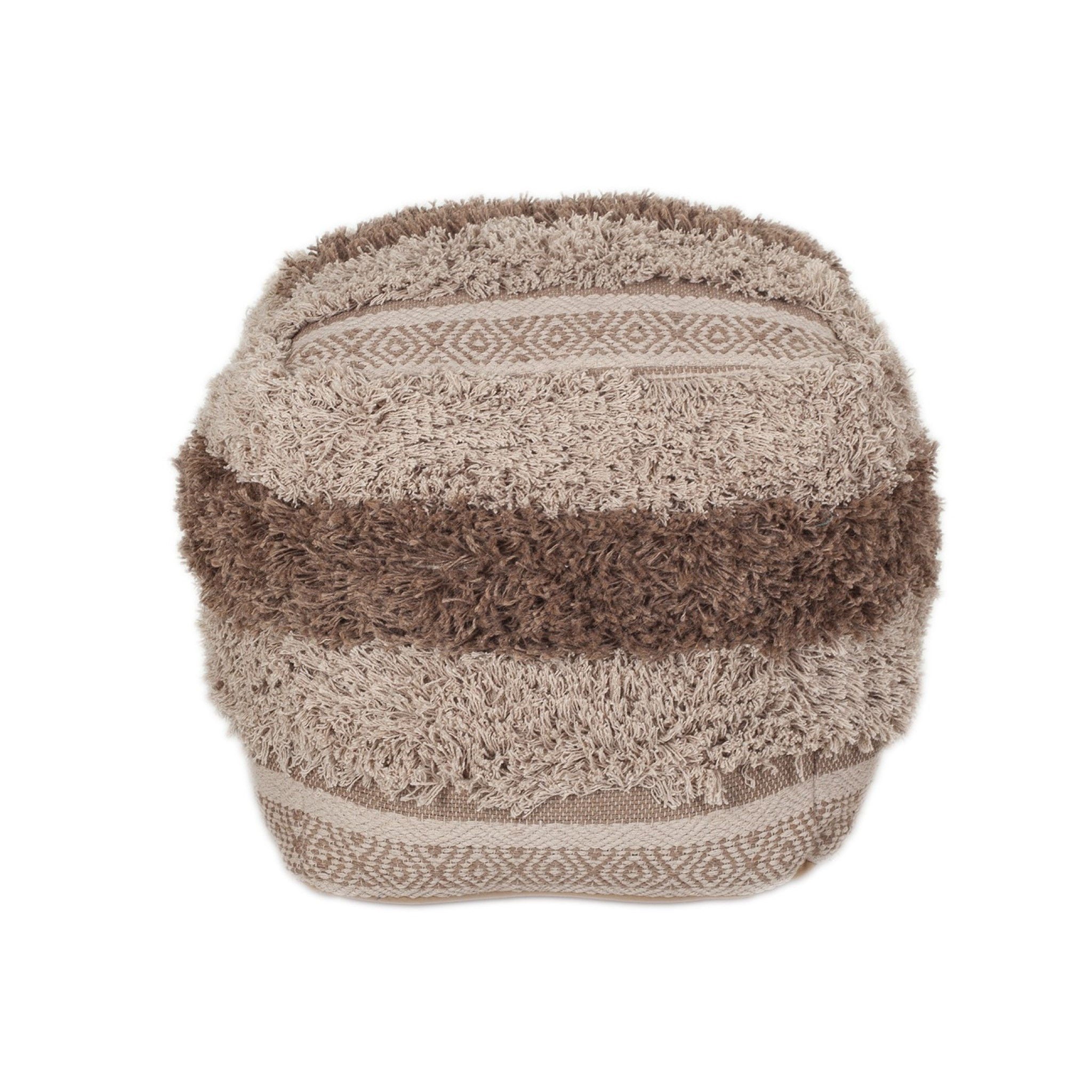 Boho Shaggy Textured Pouf - Khaki