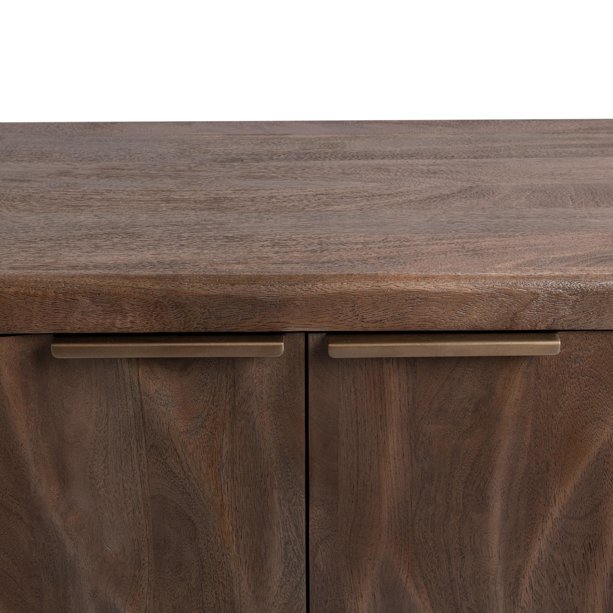 Elevate your space with this refined sideboard crafted from solid mango wood. Clean lines and subtly carved door fronts create a flowing, wave-like texture that adds depth without overwhelming the design. The warm wood tone enhances the sculptural detailing, while the streamlined silhouette feels modern and grounded. Designed to balance style and storage, this sideboard brings understated elegance and functional beauty to dining rooms, living spaces, or open-concept interiors.