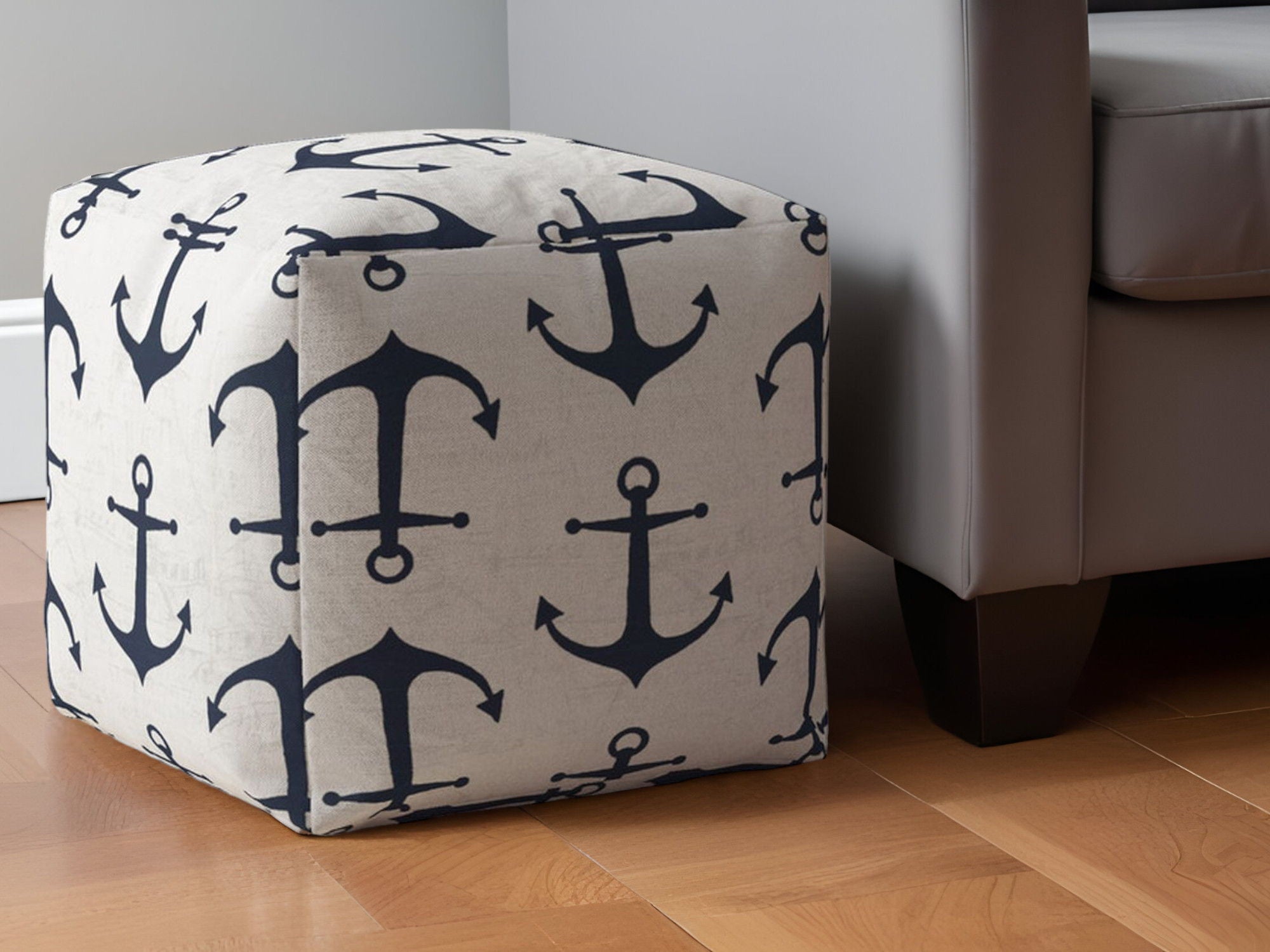 Canvas Anchor Pouf Ottoman - Blue / Gray