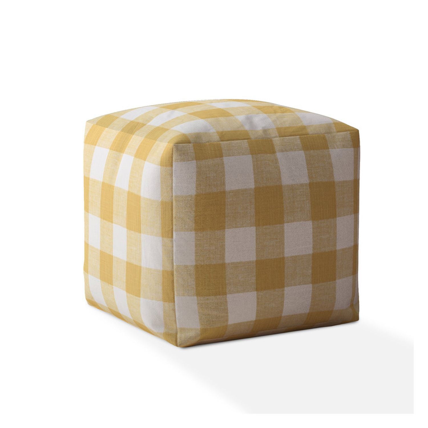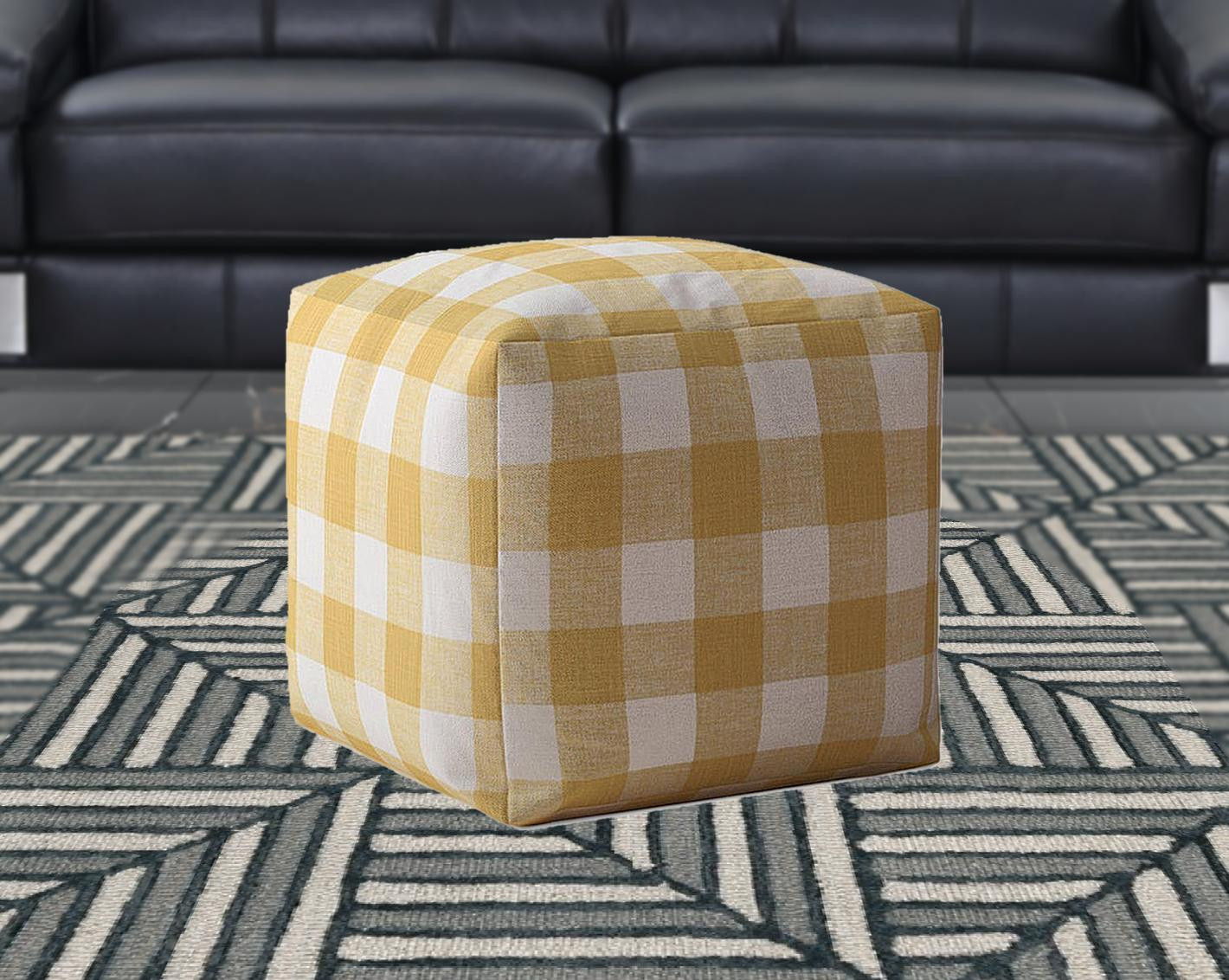 Optimize your space and add some charm to your room with the 17" yellow and white canvas gingham pouf cover. Expertly upholstered with padding and soft canvas in a gingham pattern, this ottoman is as comfortable as it is good looking. Ottomans are multi-functional additions to your space that add fashion and practical value. 17" H x 17" W x 1" D