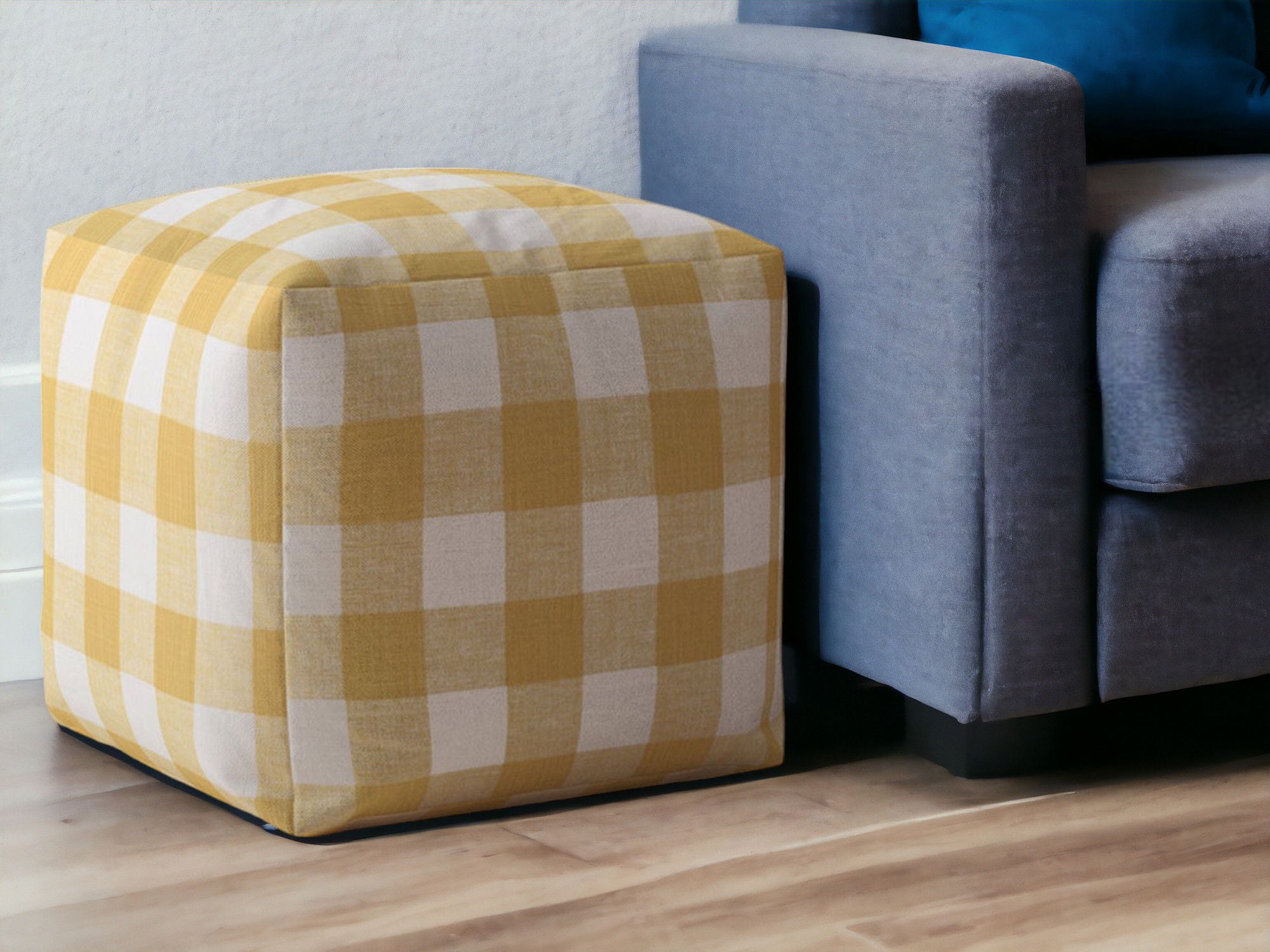 Canvas Gingham Pouf Ottoman - Yellow / White