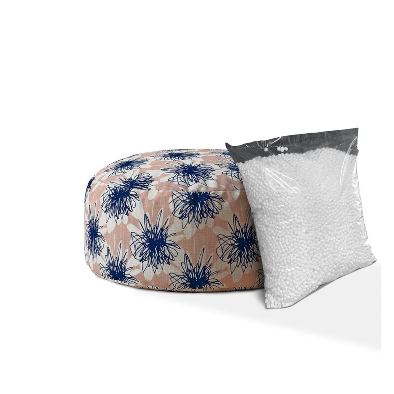 Canvas Round Floral Pouf Cover - Pink / Blue