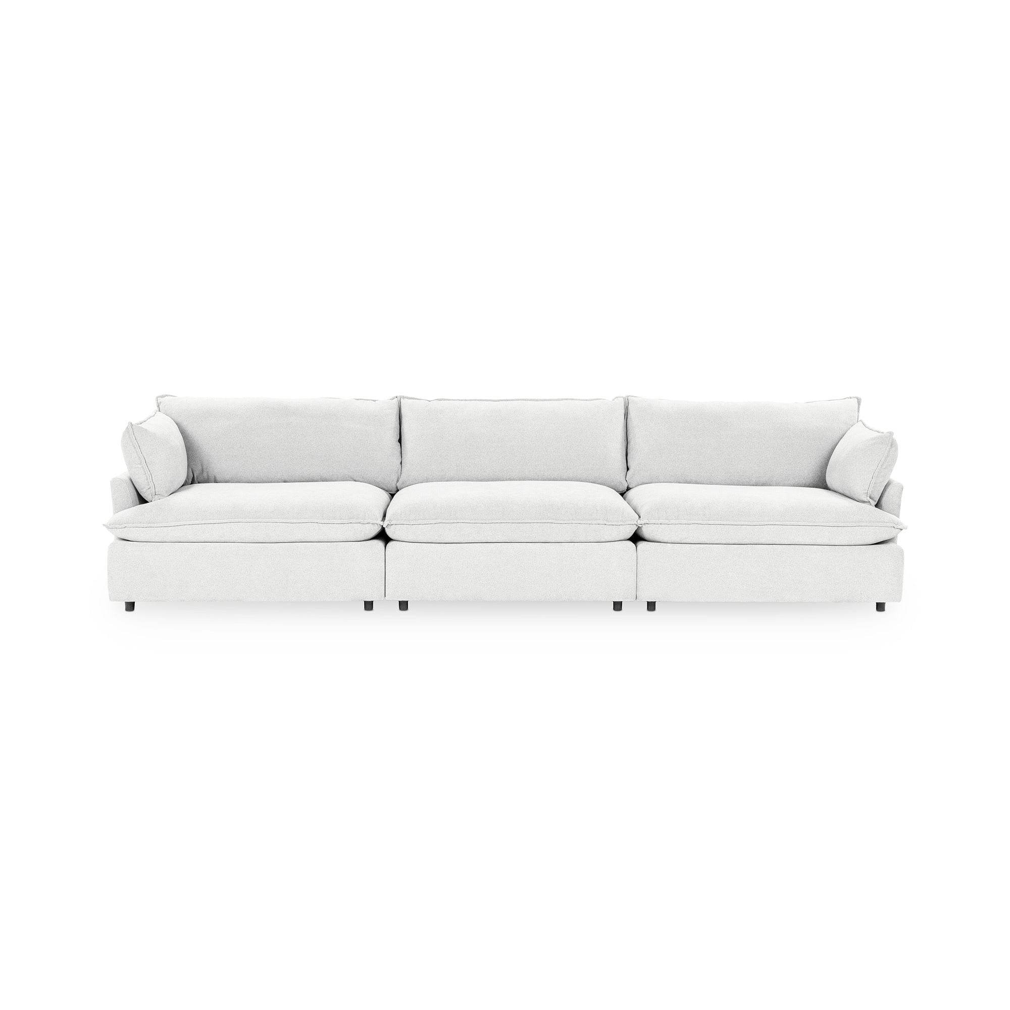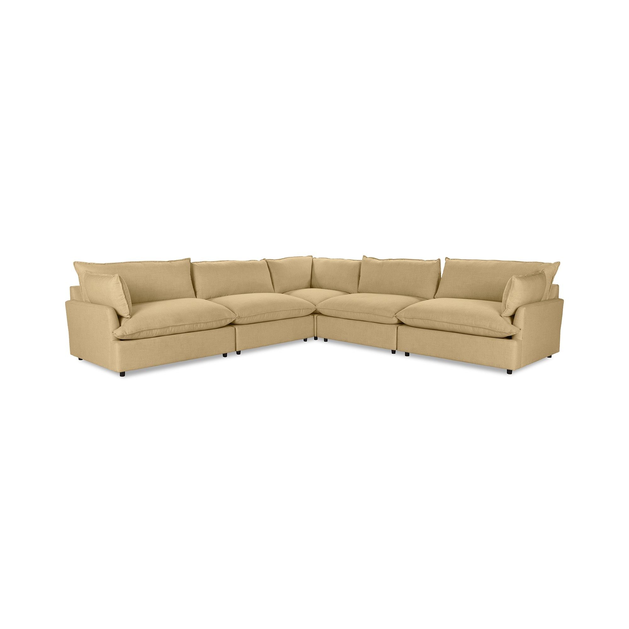 The Caplan Modular Sectional offers luxurious comfort and endless versatility. Available in 2, 3, 4, 5, and 6-piece configurations, it can be tailored to fit any space perfectly. Designed with deep seating and generously filled with feather and down, it provides an ultra-cozy lounging experience. The Caplan Modular Sectional combines modern style with plush comfort, making it ideal for both entertaining and everyday relaxation.