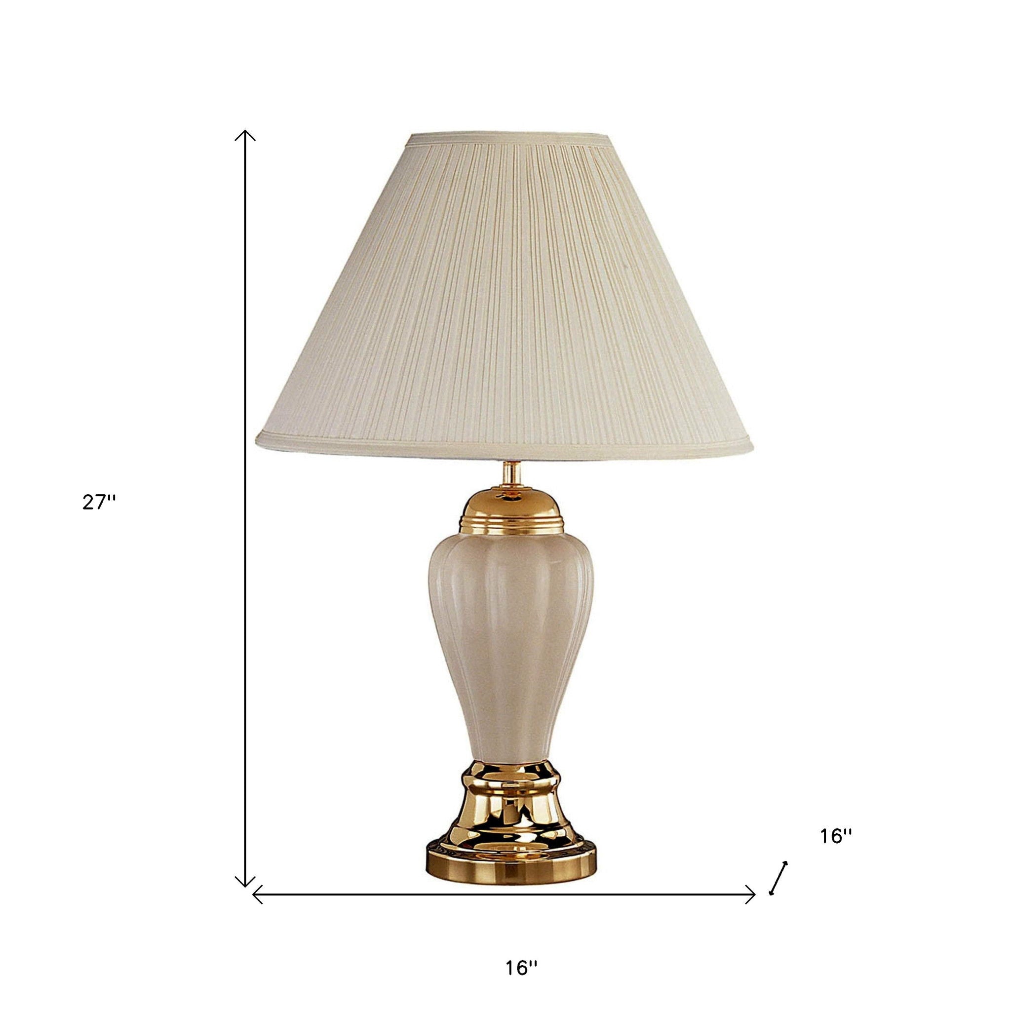 Ceramic Urn Table Lamp With Off-White Empire Shade - Ivory And Gold