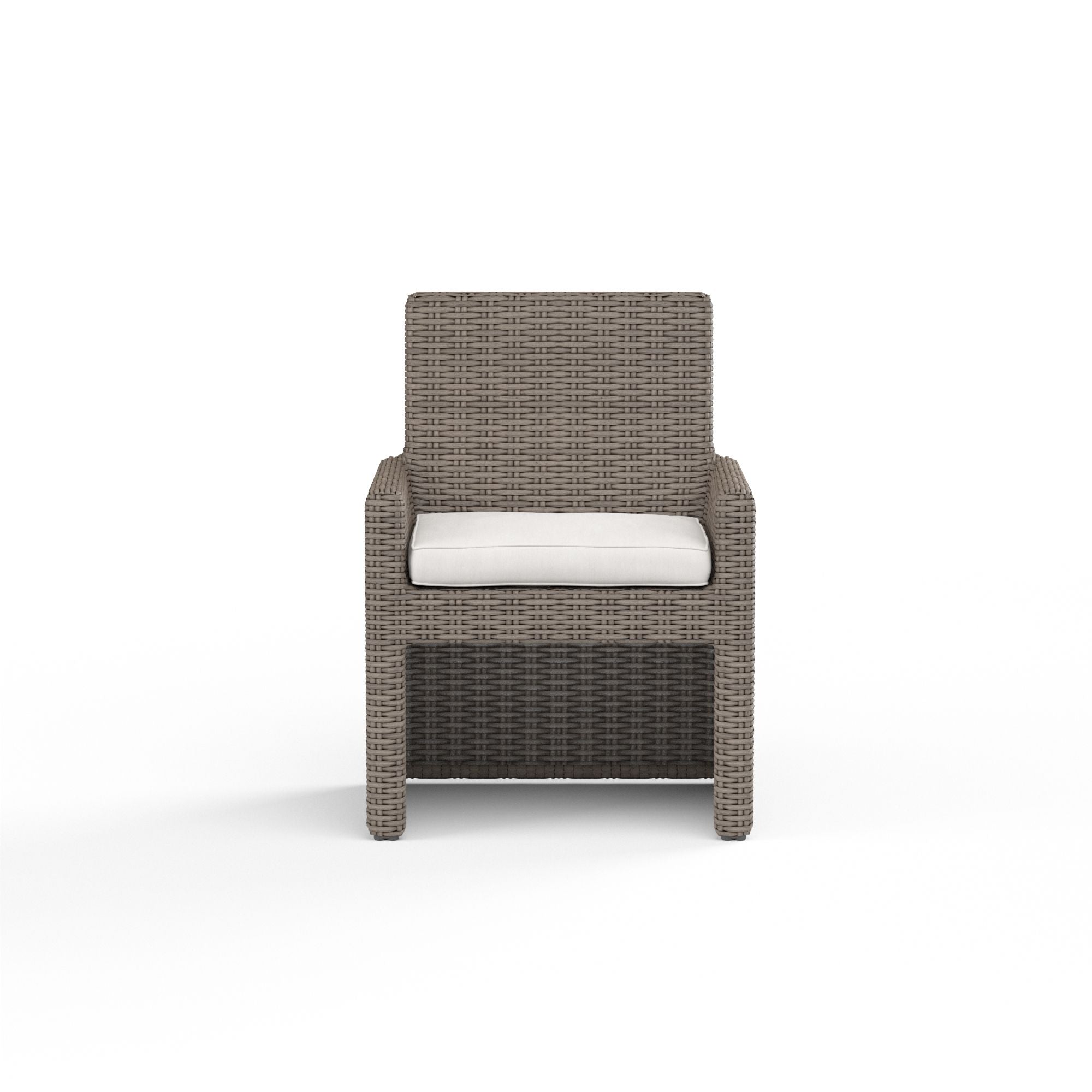 Sunset West's Coronado Dining Chair embodies casual sophistication, with transitional lines wrapped in a beautiful resin wicker finish in Driftwood. Outstanding comfort is provided with plush, fast drying cushions and generous seating proportions.
