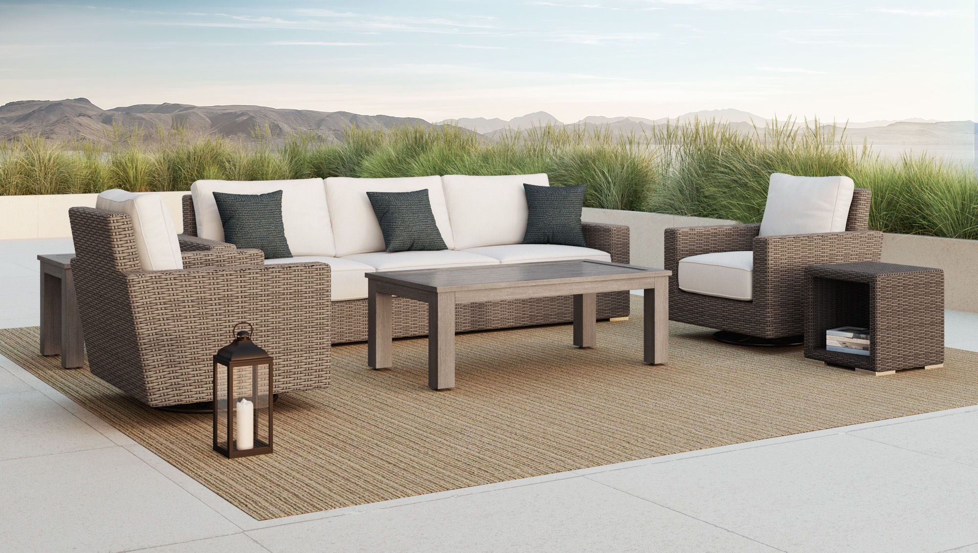 Coronado - Swivel Rocker, With Self Welt - Canvas Flax / Dark Brown