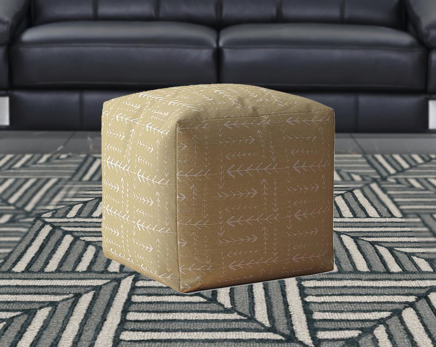 Cotton Abstract Pouf Cover - Beige