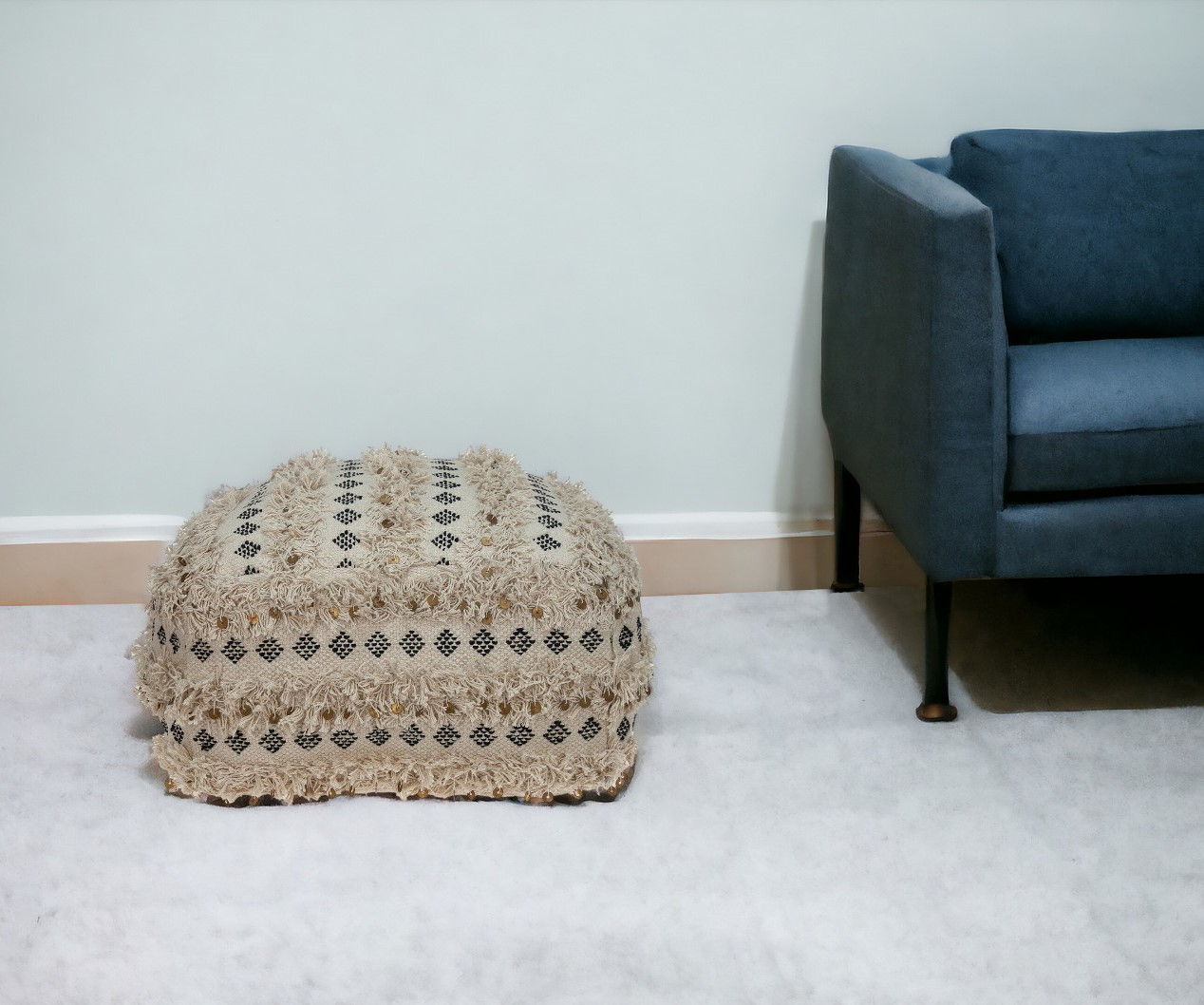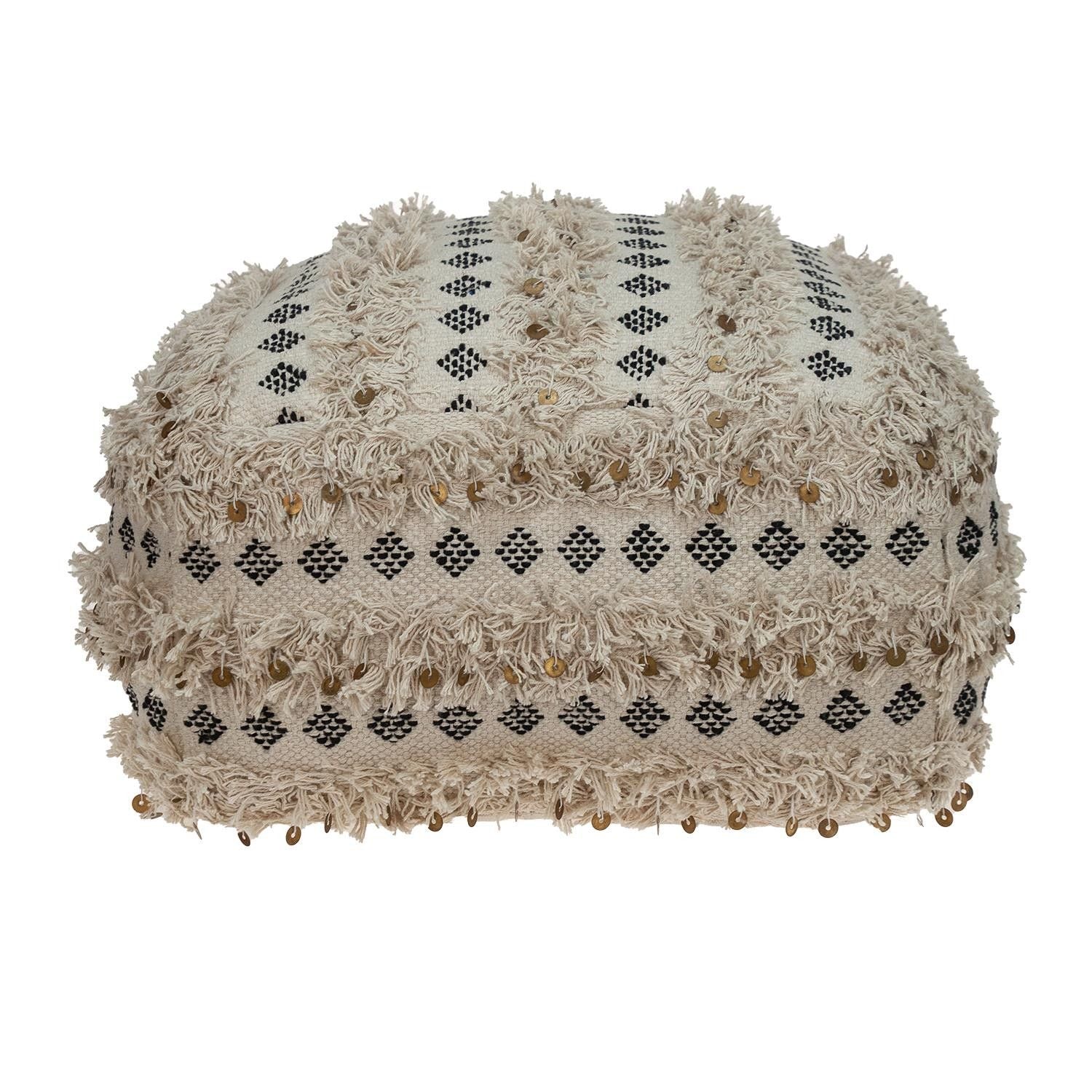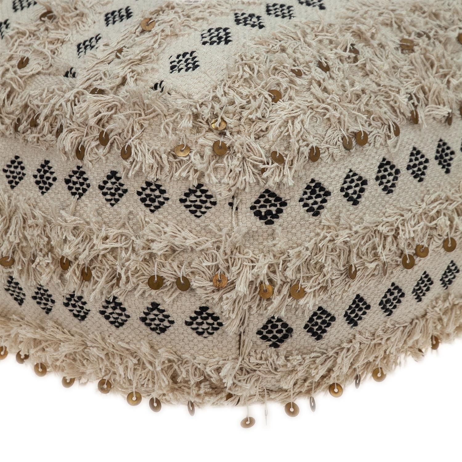 Cotton Blend Abstract Pouf Ottoman - Beige