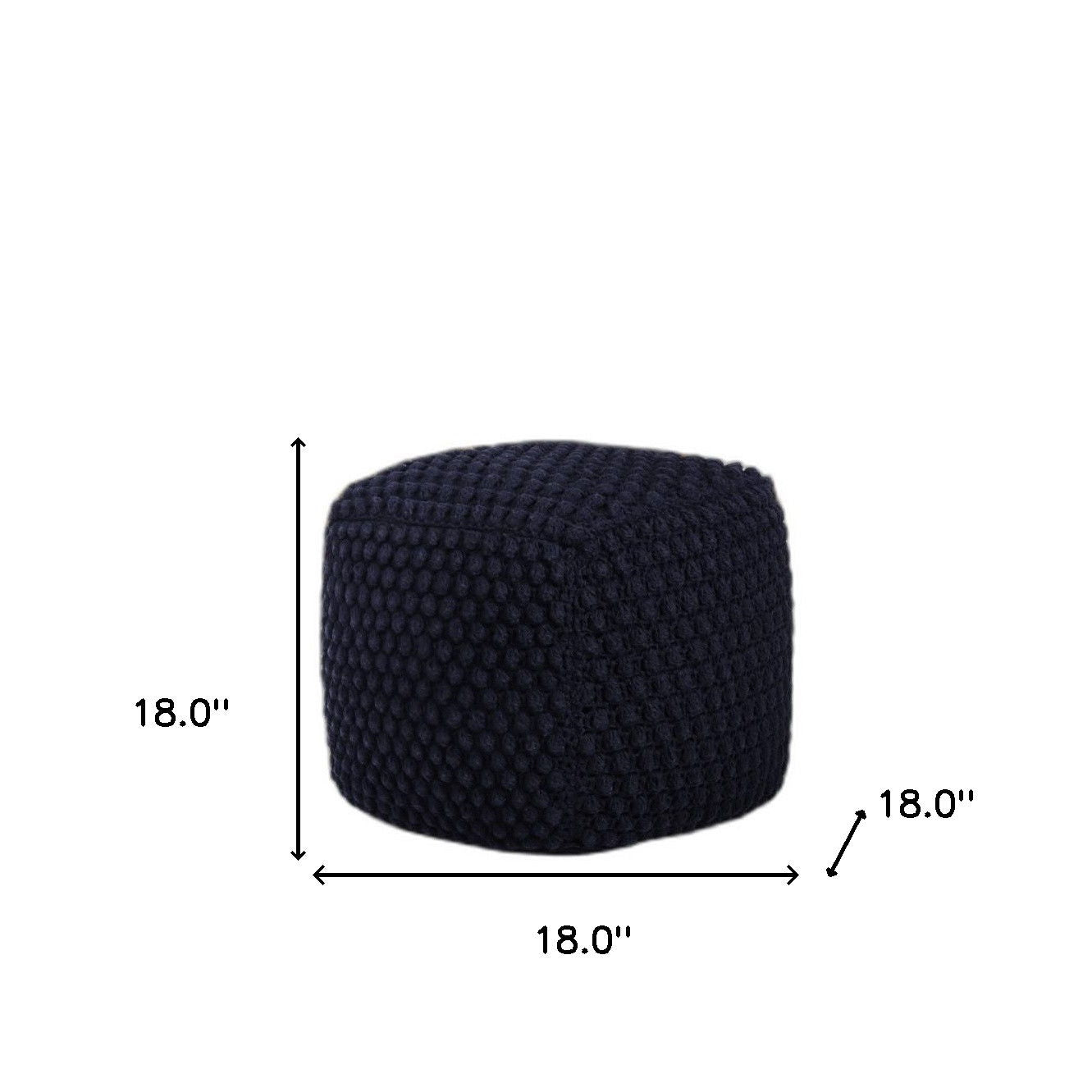 Cotton Blend Pouf Ottoman - Navy Blue