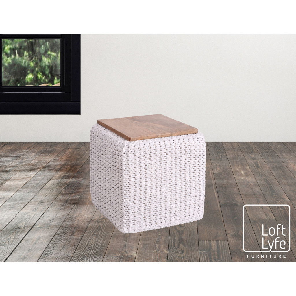 Cotton Blend, Pouf Ottoman - White