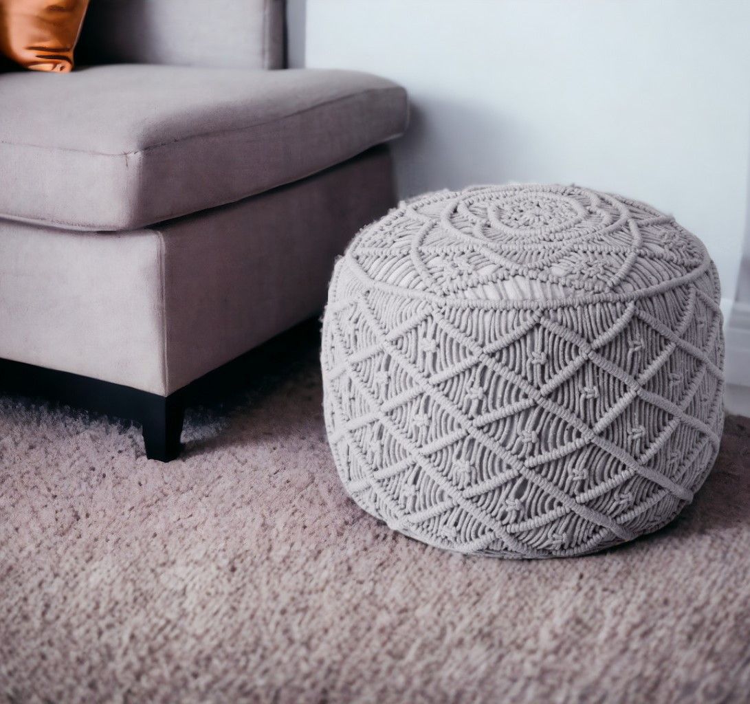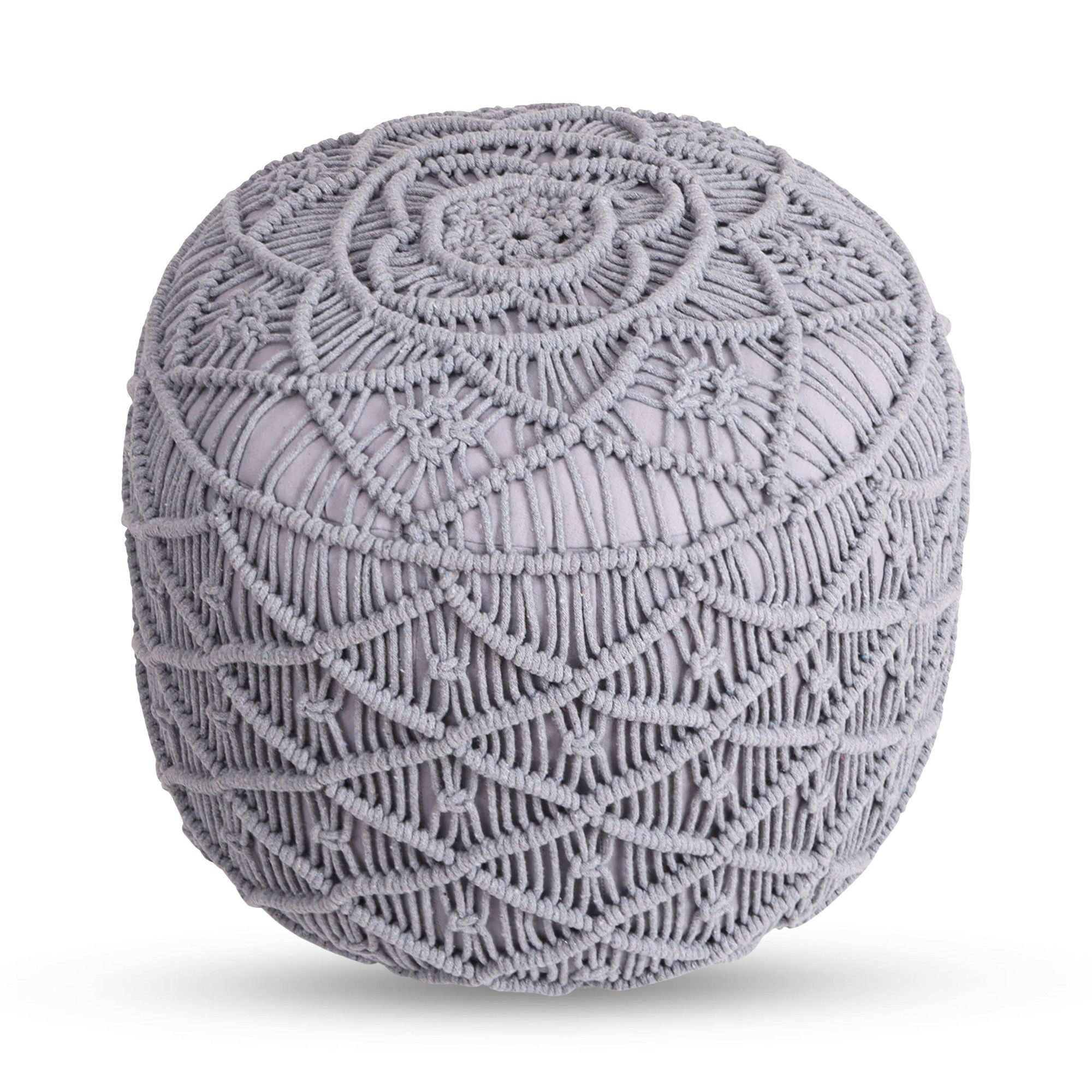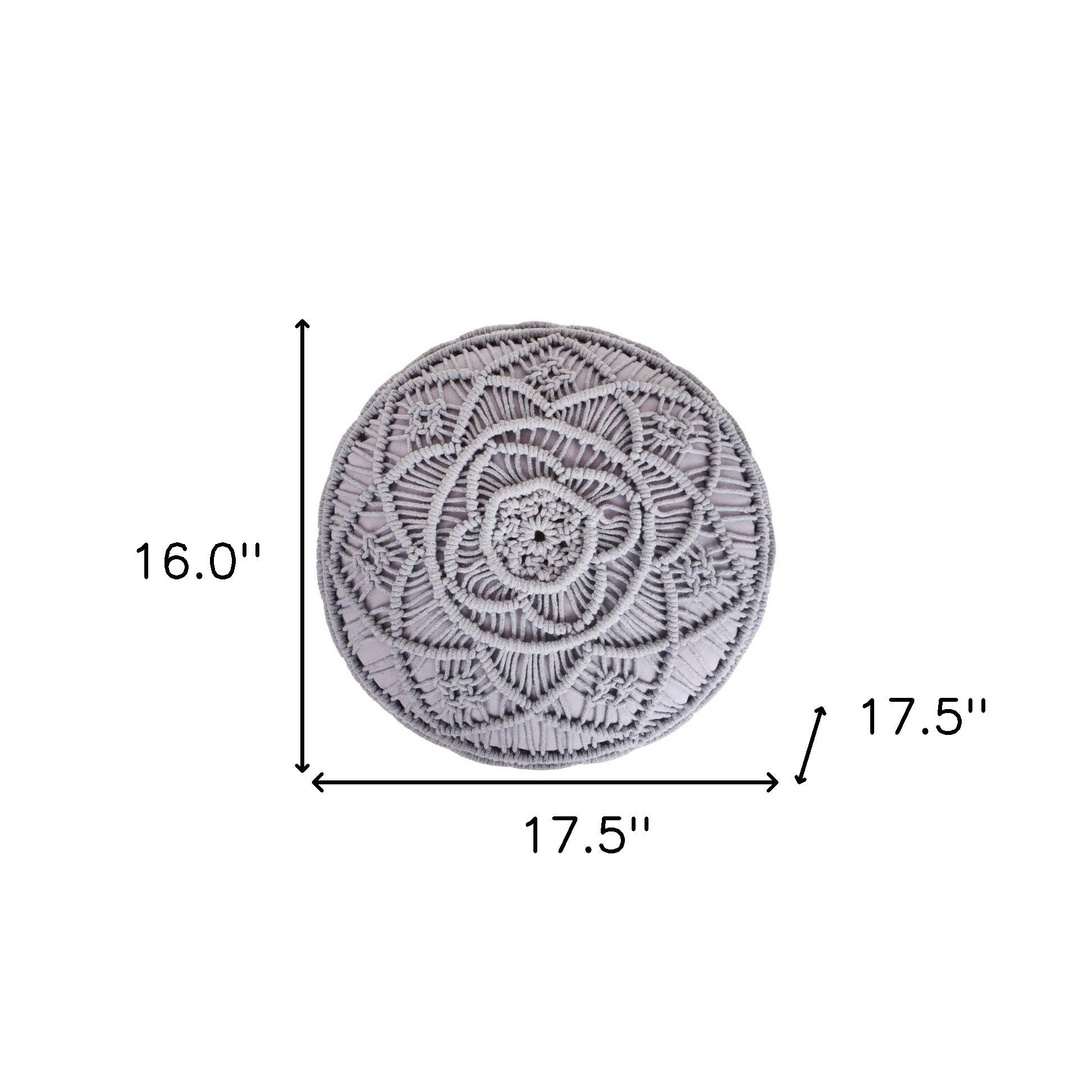 Get ready to relax with this 18-inch light gray cotton blend round floral pouf ottoman. Add chic style to your space with this fun pouf that not only looks cool but can be a great foot rest or extra seat when needed. Expertly upholstered with padding and soft cotton blend in a floral pattern, this ottoman is as comfortable as it is good looking. Ottomans are multi-functional additions to your space that add fashion and practical value. 16-inch H x 17.5-inch W x 17.5-inch D