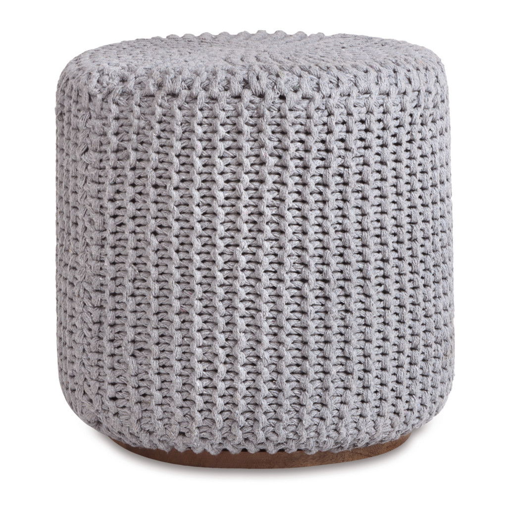 Cotton Blend Round Pouf Ottoman - Light Gray