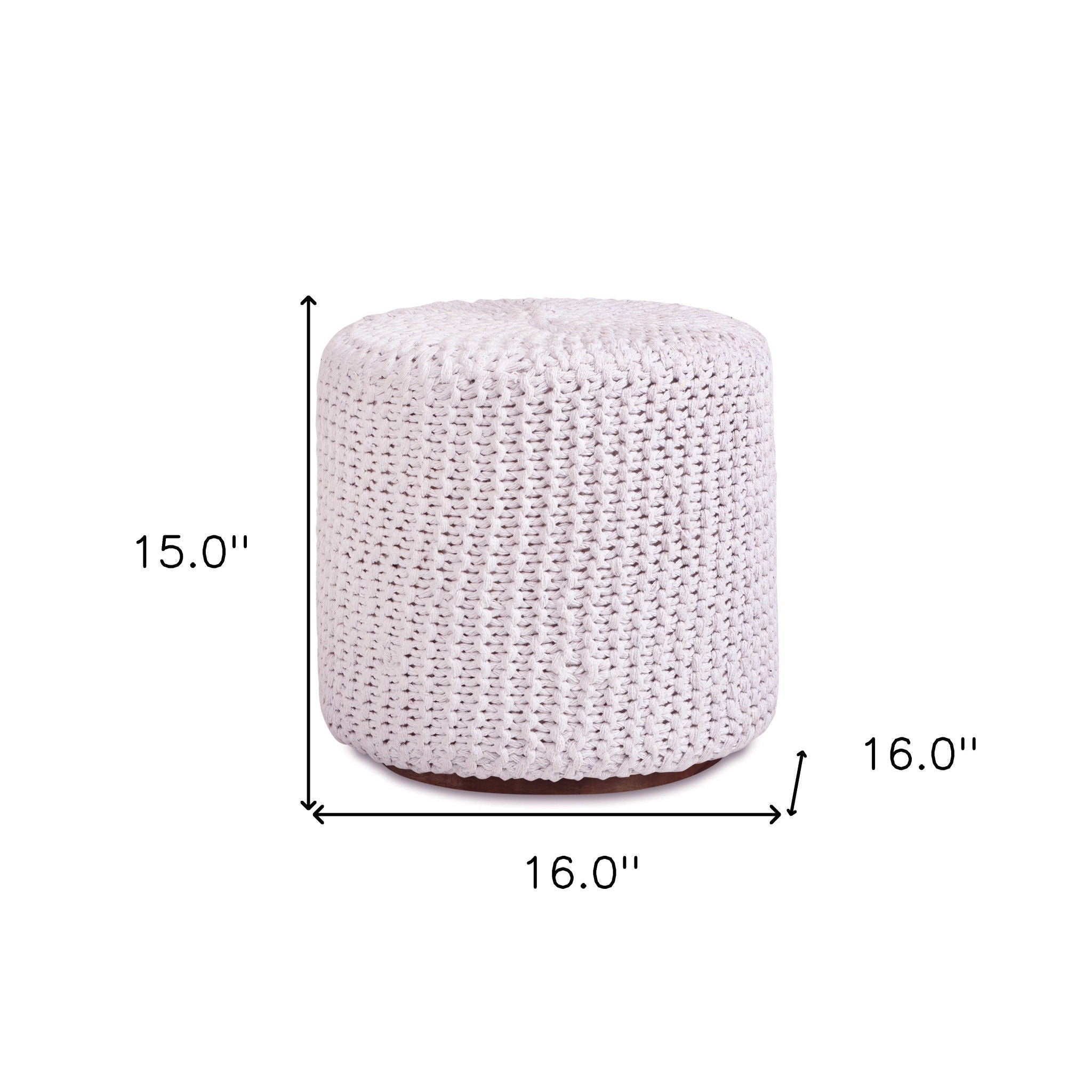 Get ready to relax with this 16-inch white cotton blend round pouf ottoman. Add chic style to your space with this fun pouf that not only looks cool but can be a great foot rest or extra seat when needed. Expertly upholstered with padding in a soft solid color cotton blend, this ottoman is as comfortable as it is good looking. Ottomans are multi-functional additions to your space that add fashion and practical value. 15-inch H x 16-inch W x 16-inch D