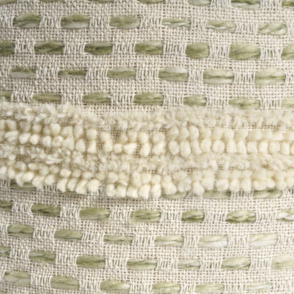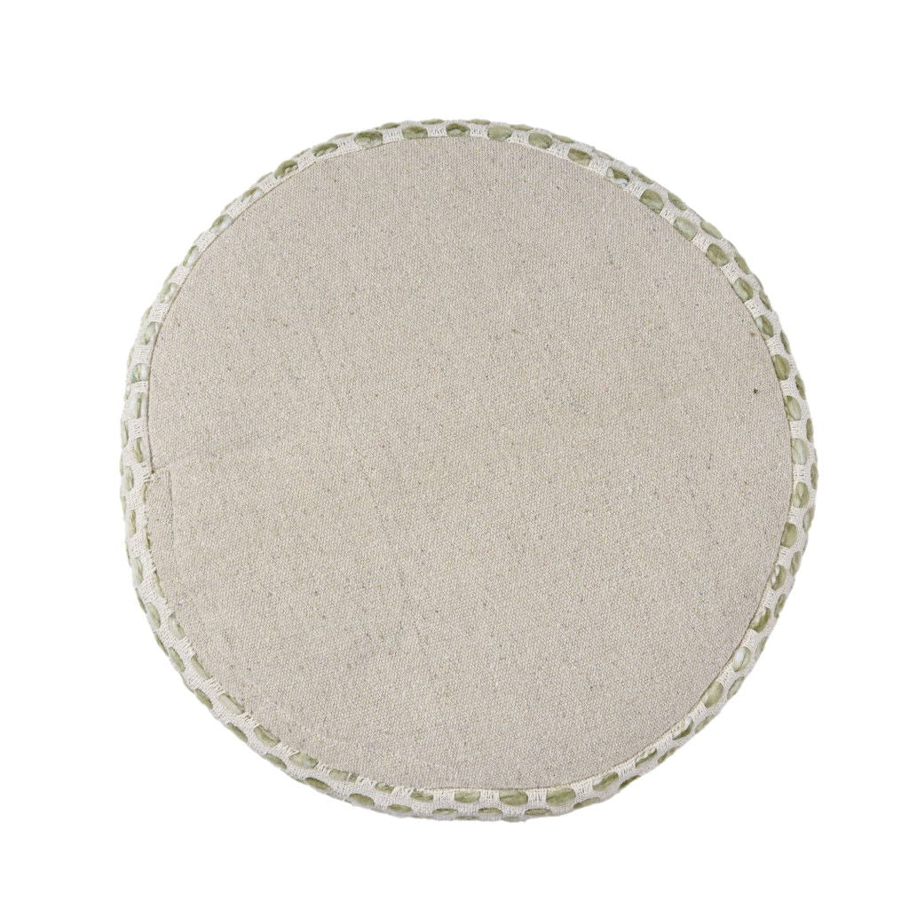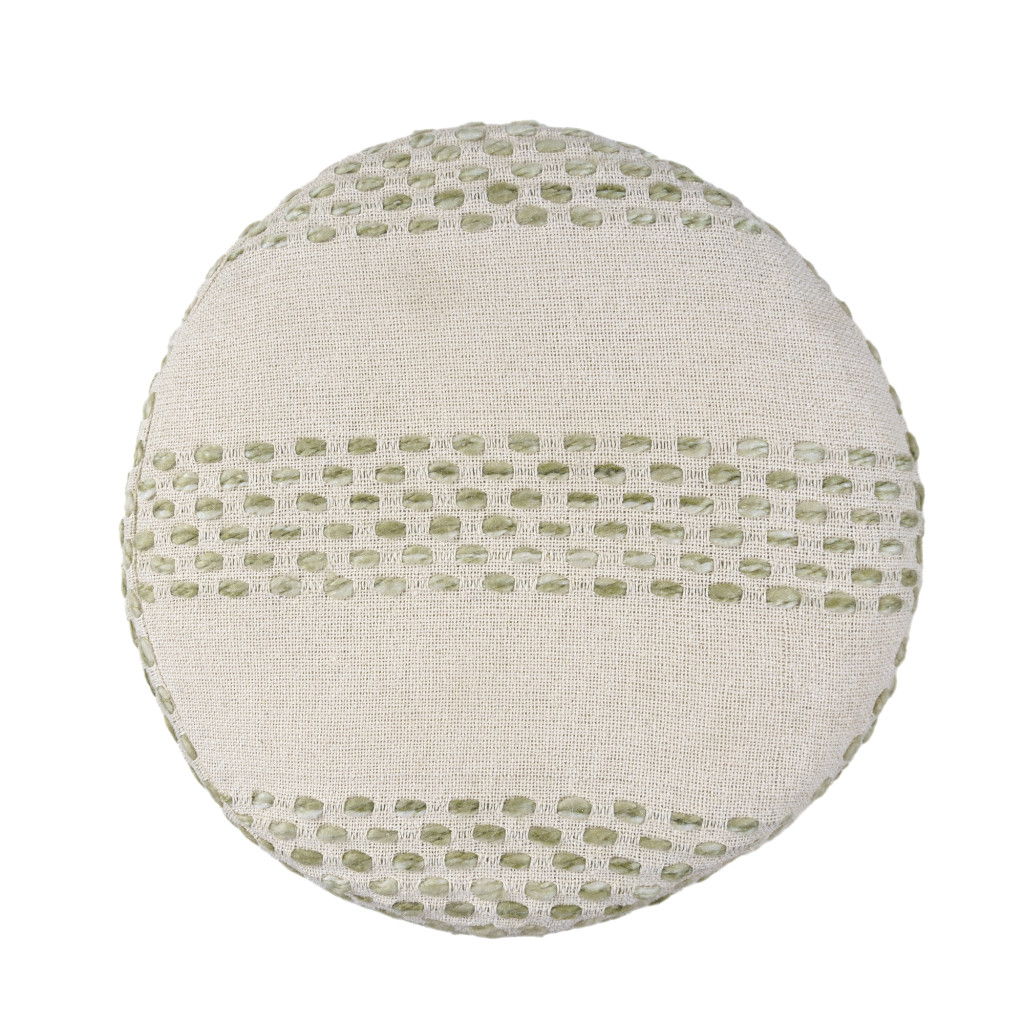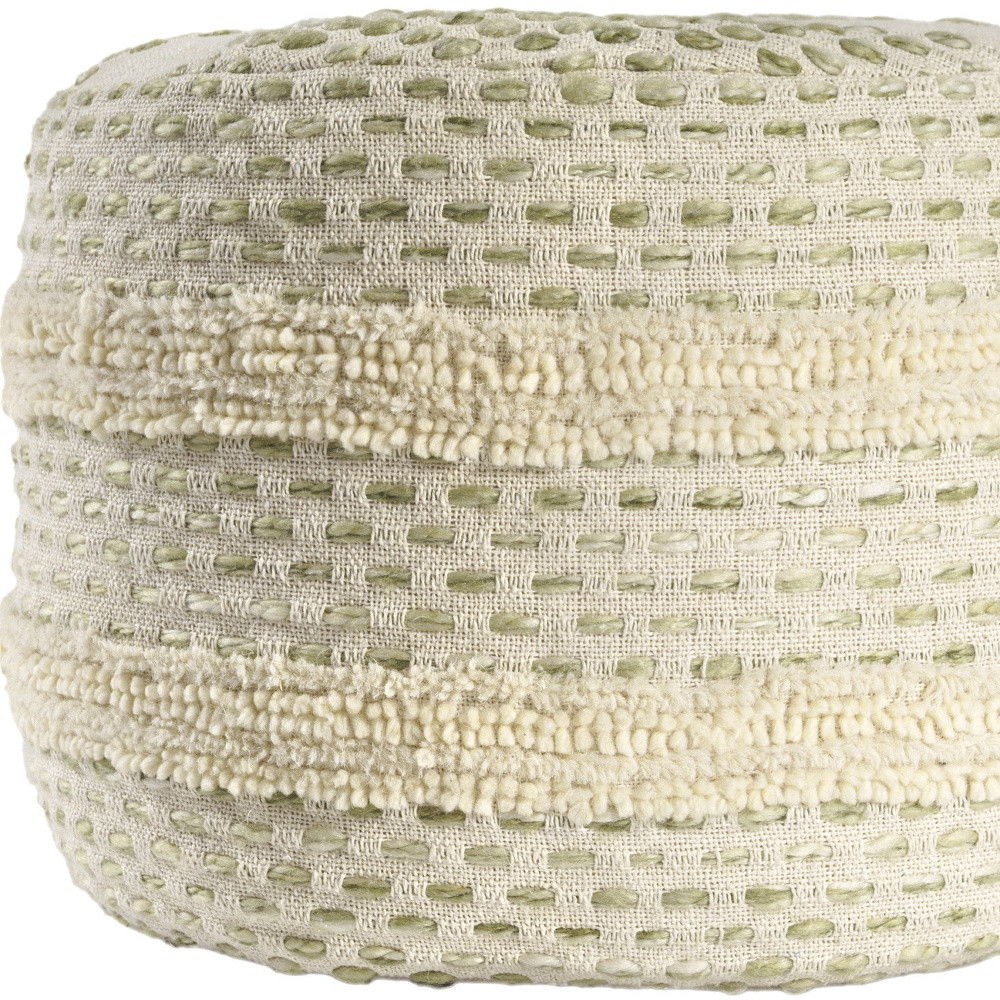 Cotton Blend Round Striped Pouf Ottoman - Ivory And Green
