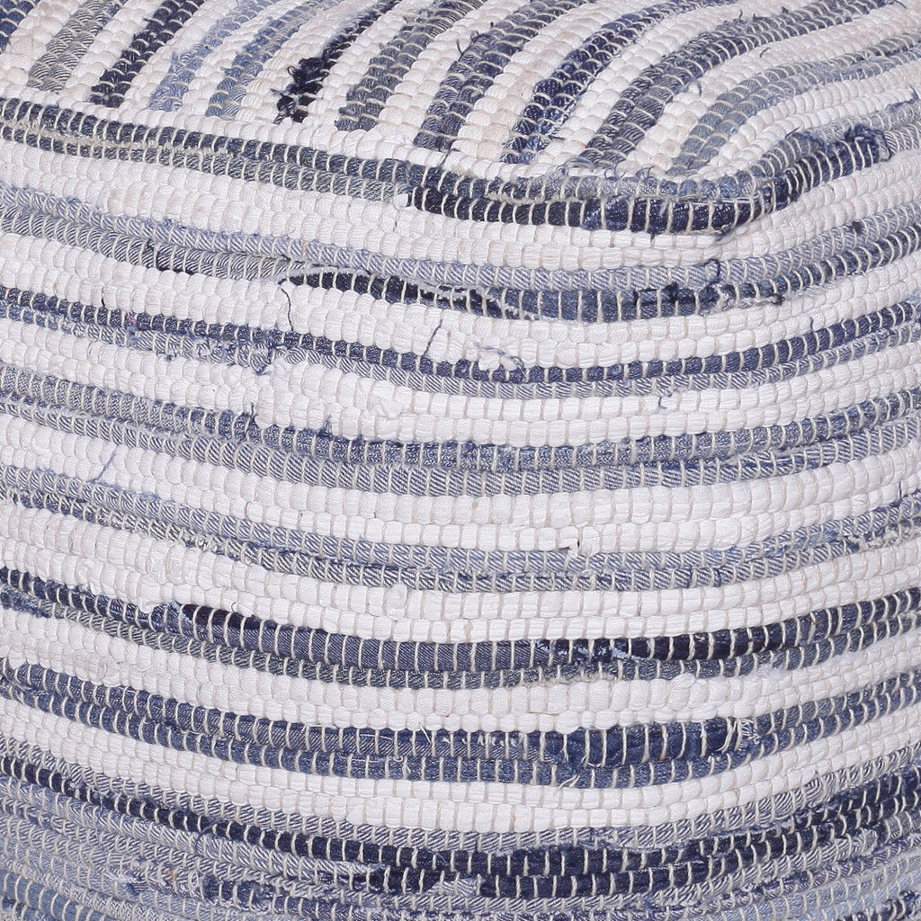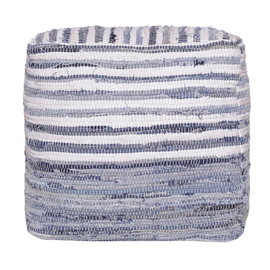 Cotton Cube Striped Pouf Ottoman - Blue