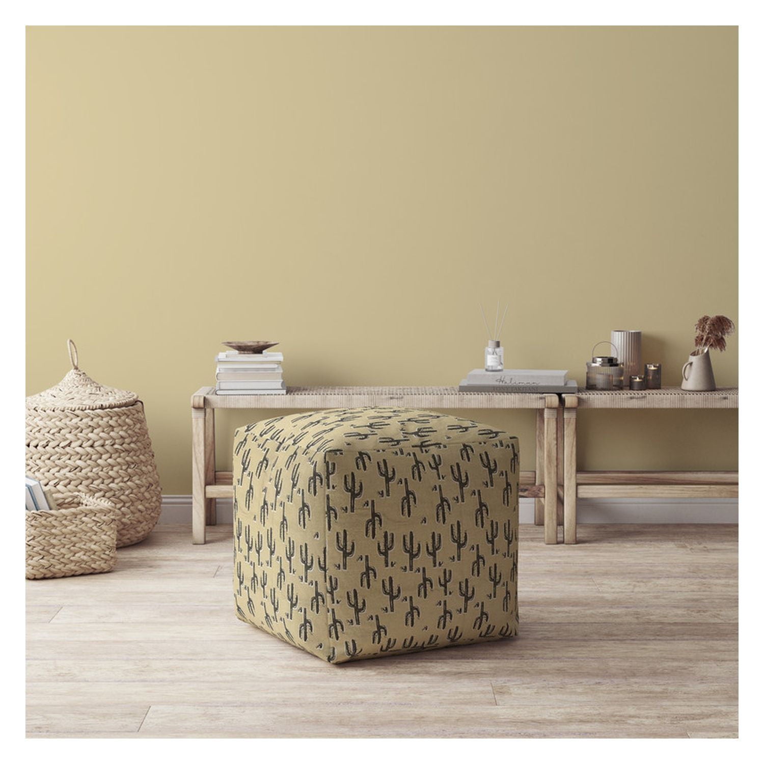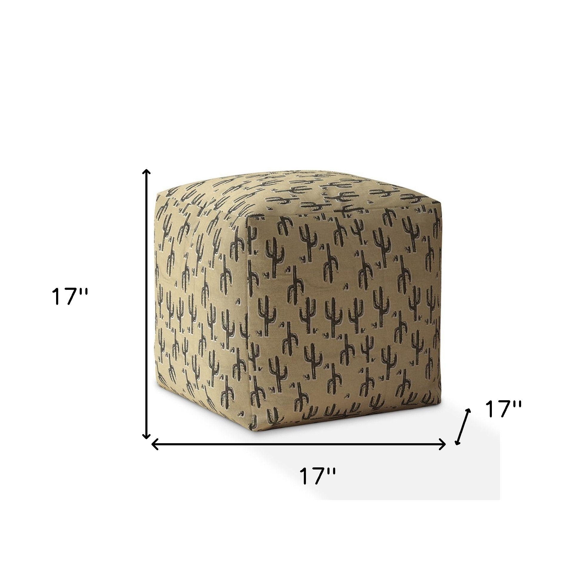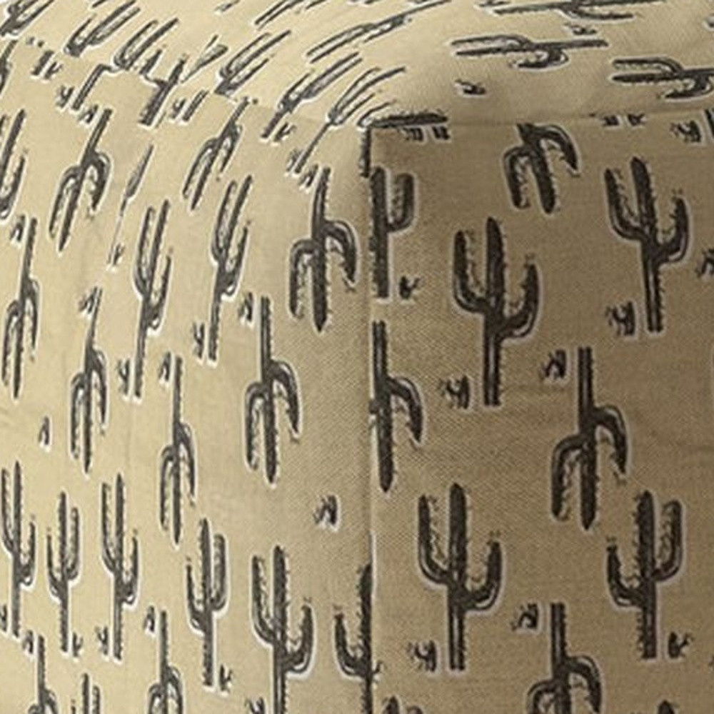 Cotton Floral Pouf Ottoman - Beige