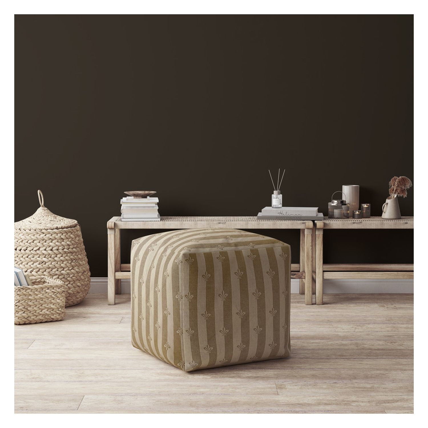 Optimize your space and add some charm to your room with the 17-inch taupe cotton floral pouf ottoman. Add chic style to your space with this fun pouf that not only looks cool but can be a great foot rest or extra seat when needed. Expertly upholstered with padding and soft cotton in a floral pattern, this ottoman is as comfortable as it is good looking. Easy to blend into most any room, a ottoman is a way to add a good looking accent to your space that can also be practical and useful. . 17-inch H x 17-inch W x 17-inch D