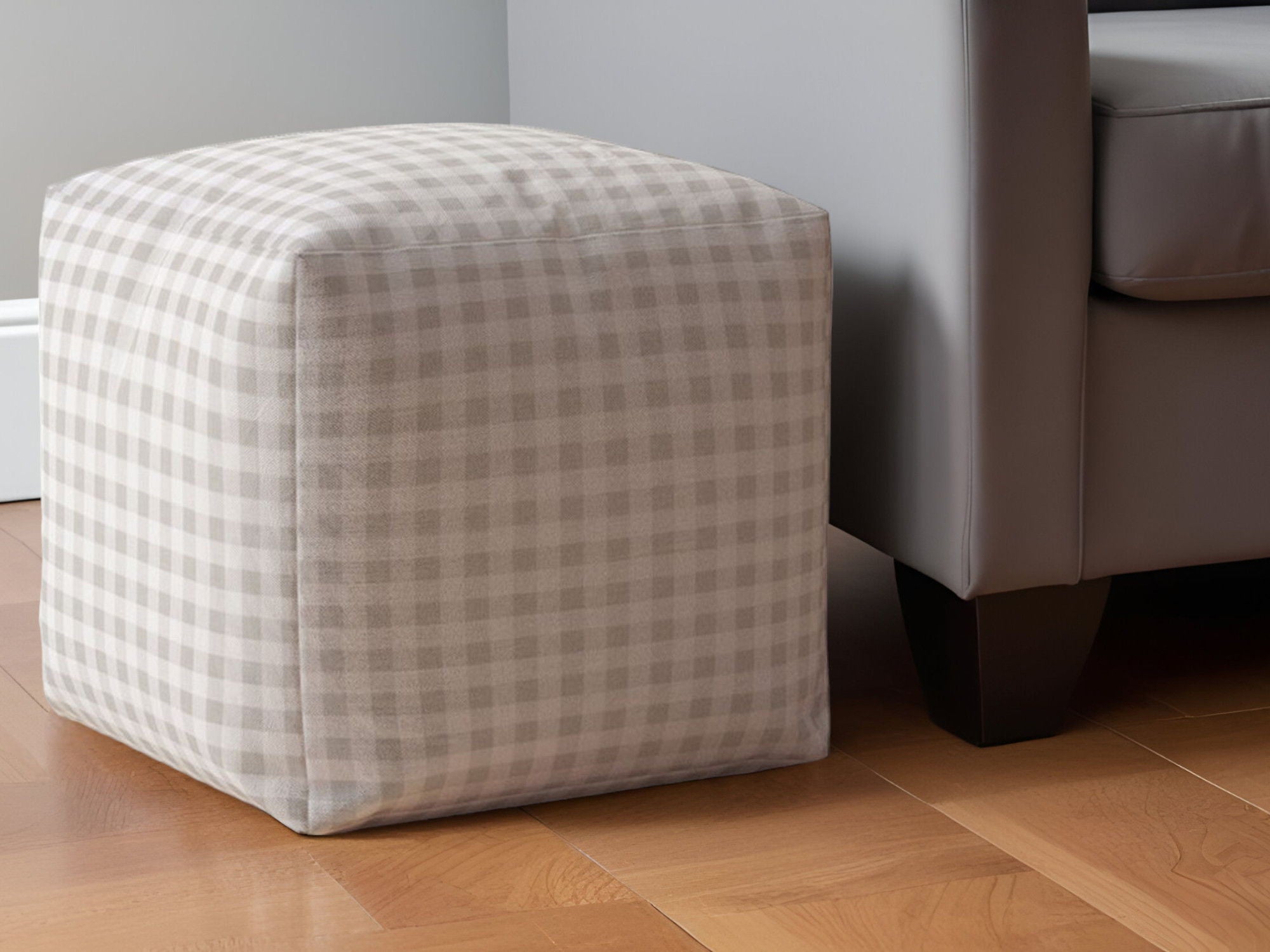 Cotton Gingham Pouf Ottoman - Gray