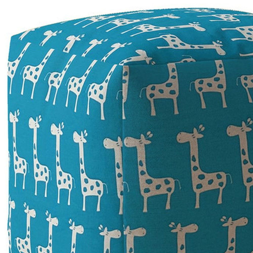 Cotton Giraffe Pouf Ottoman - Blue / White