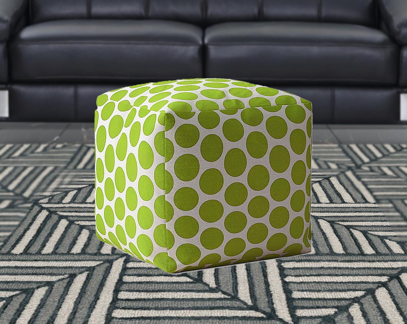 Cotton Polka Dots Pouf Cover - Green / White