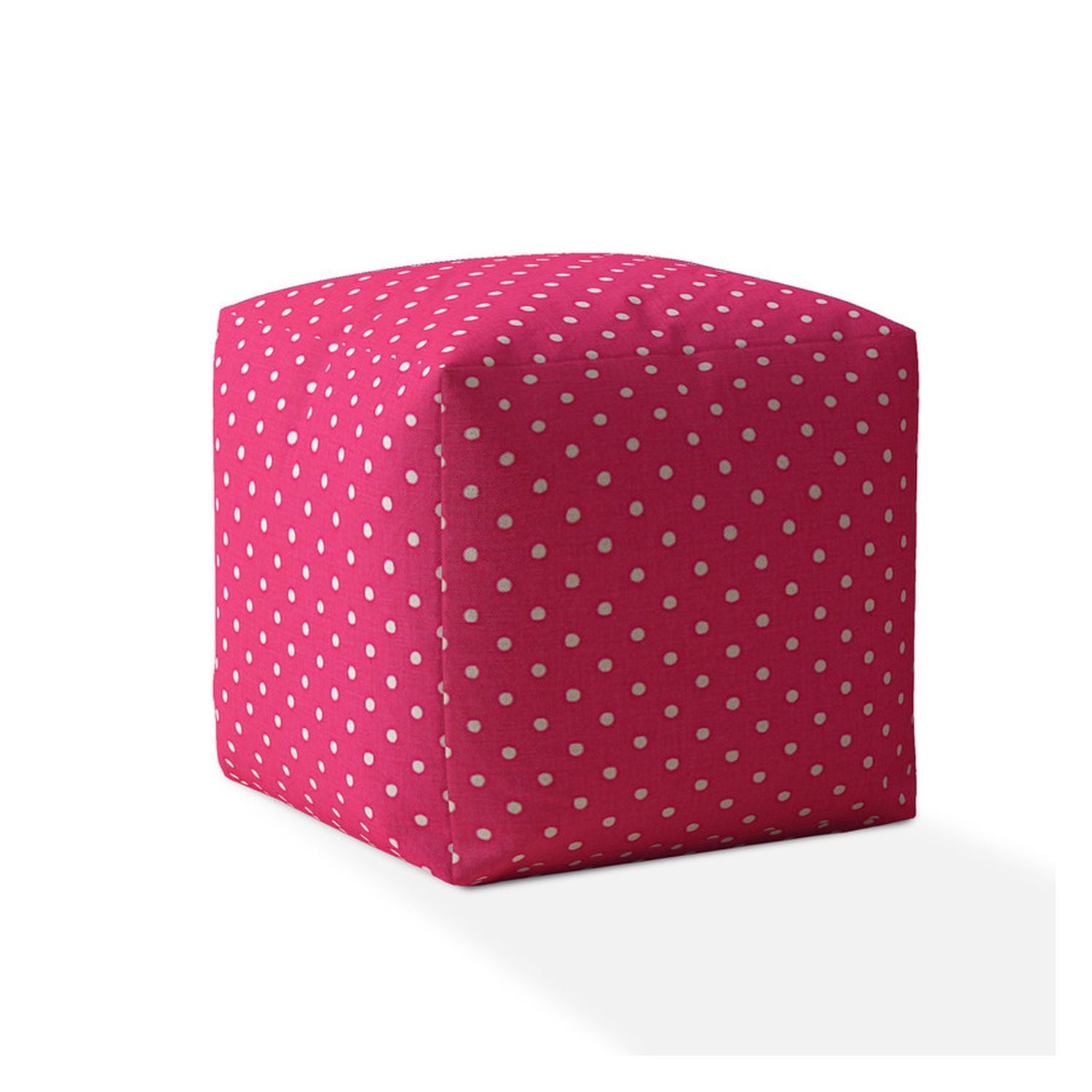 Practicality and fashion mix together with this handy 17-inch pink cotton polka dots pouf ottoman. Add chic style to your space with this fun pouf that not only looks cool but can be a great foot rest or extra seat when needed. Expertly upholstered with padding and soft cotton in a polka dots pattern, this ottoman is as comfortable as it is good looking. Ottomans are multi-functional additions to your space that add fashion and practical value. 17-inch H x 17-inch W x 17-inch D