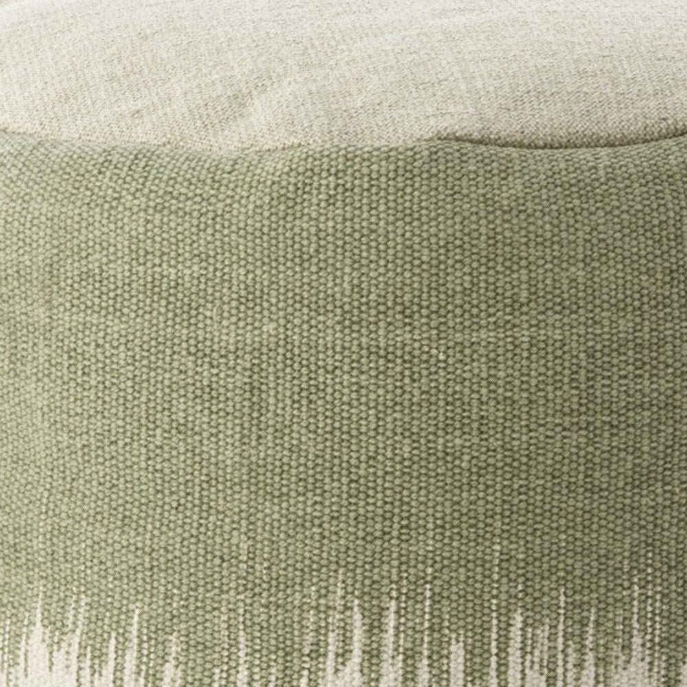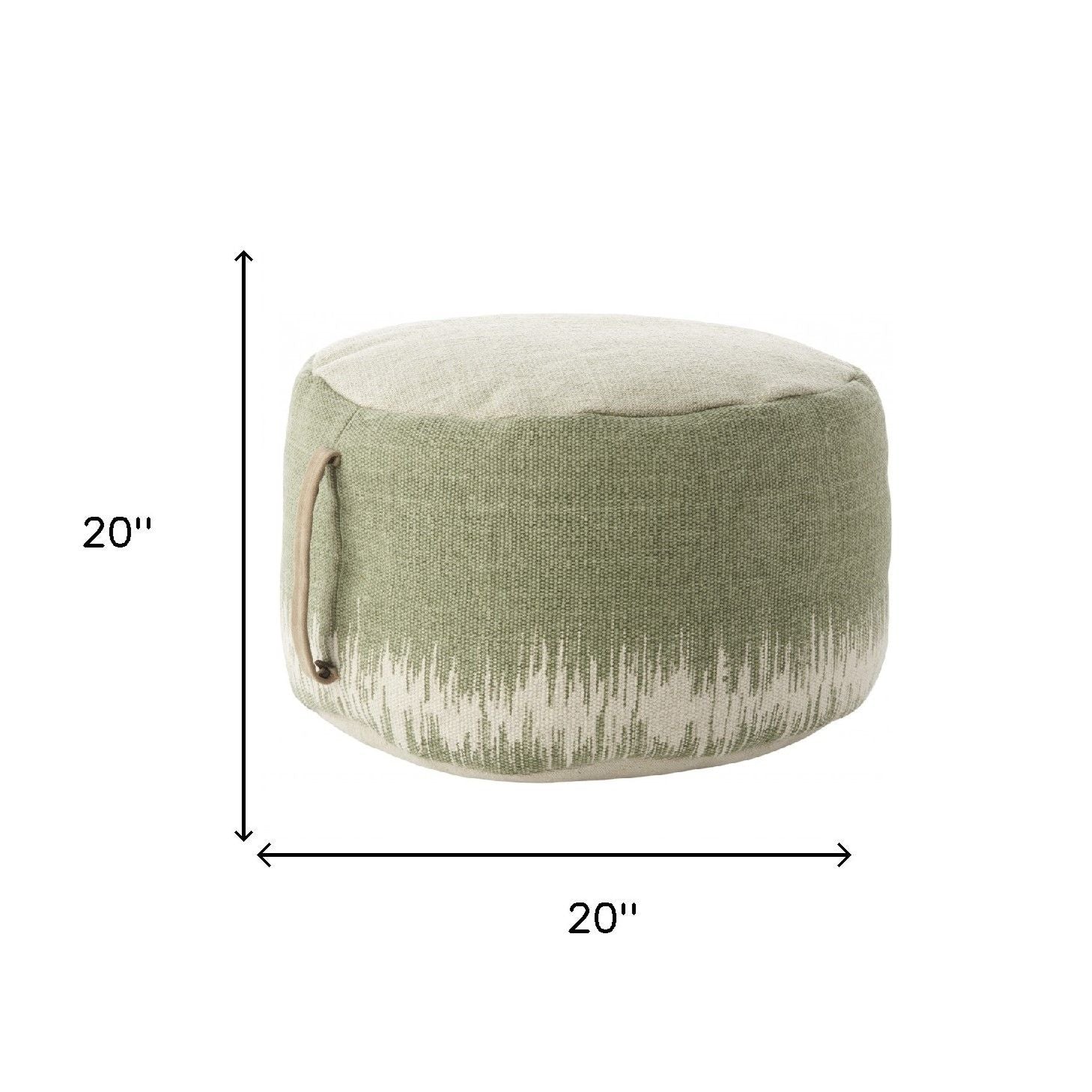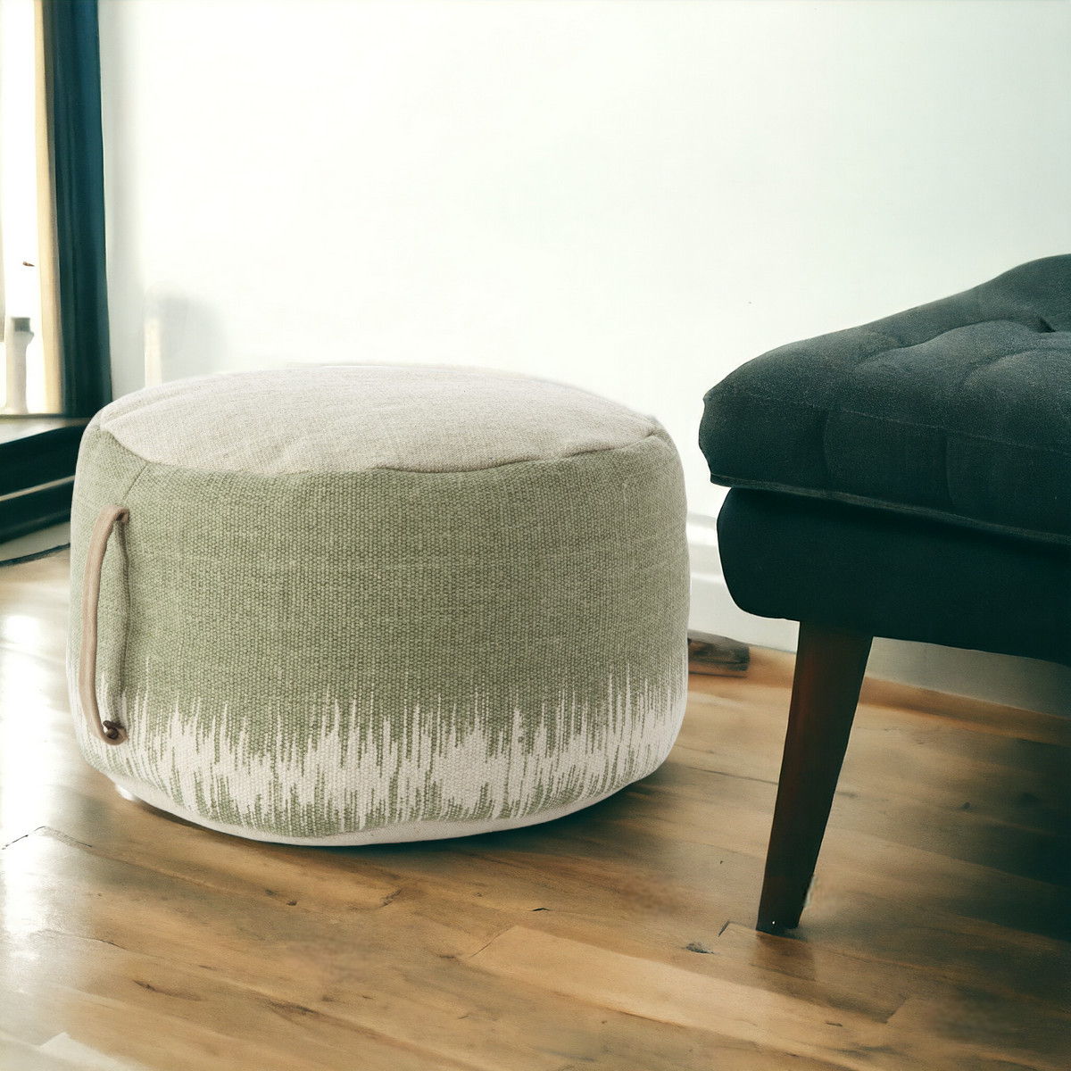 Cotton Round Abstract Pouf Ottoman - Green / White