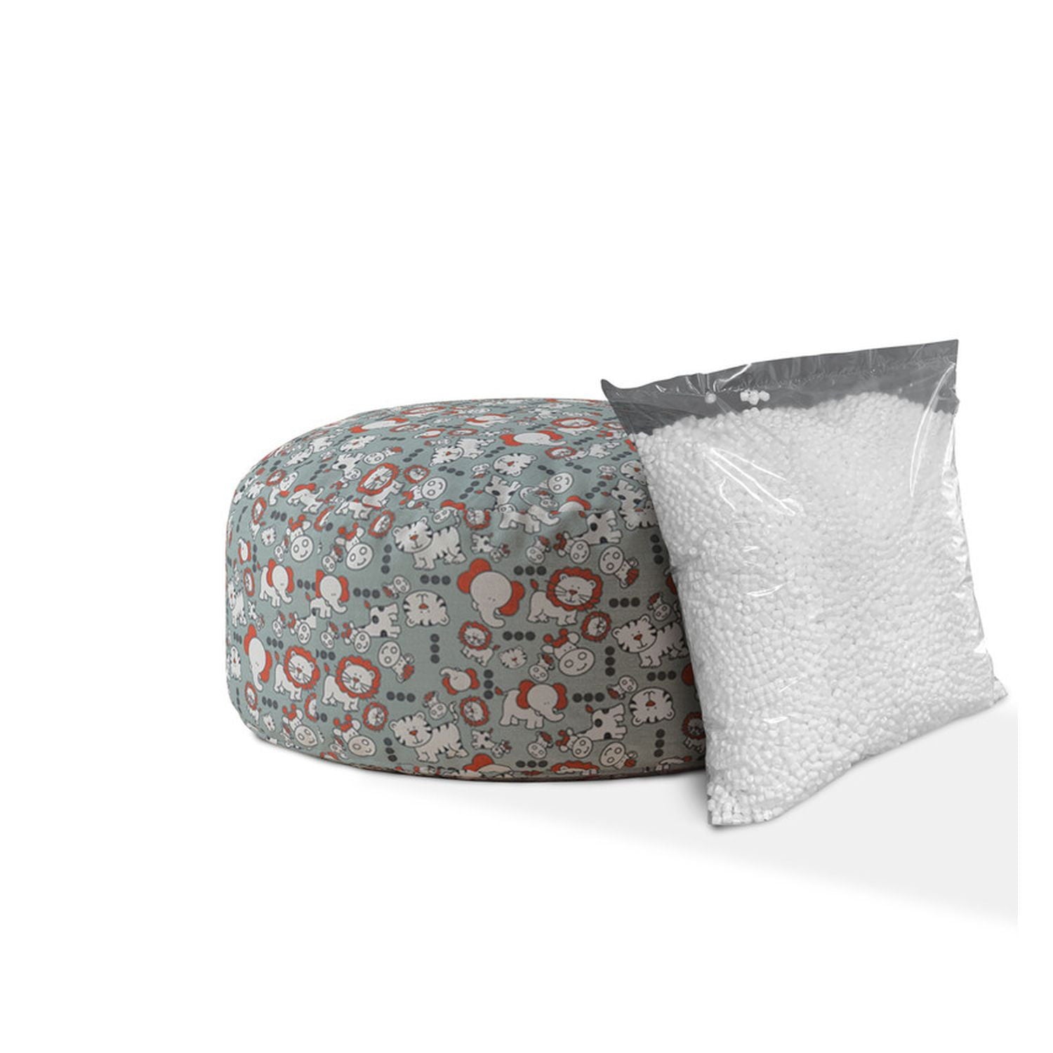Cotton Round Animal Print Pouf Cover - Gray / White