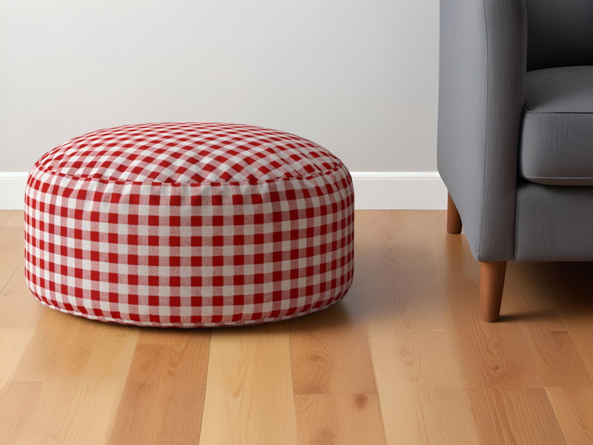 Cotton Round Gingham Pouf Ottoman - Red / White