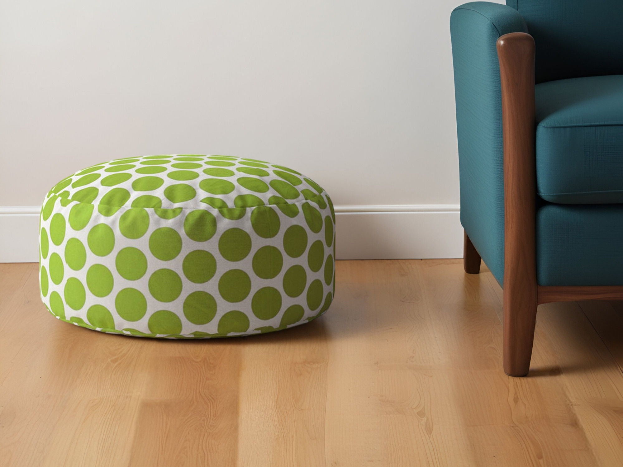 Cotton Round Polka Dots Pouf Ottoman - Green / White