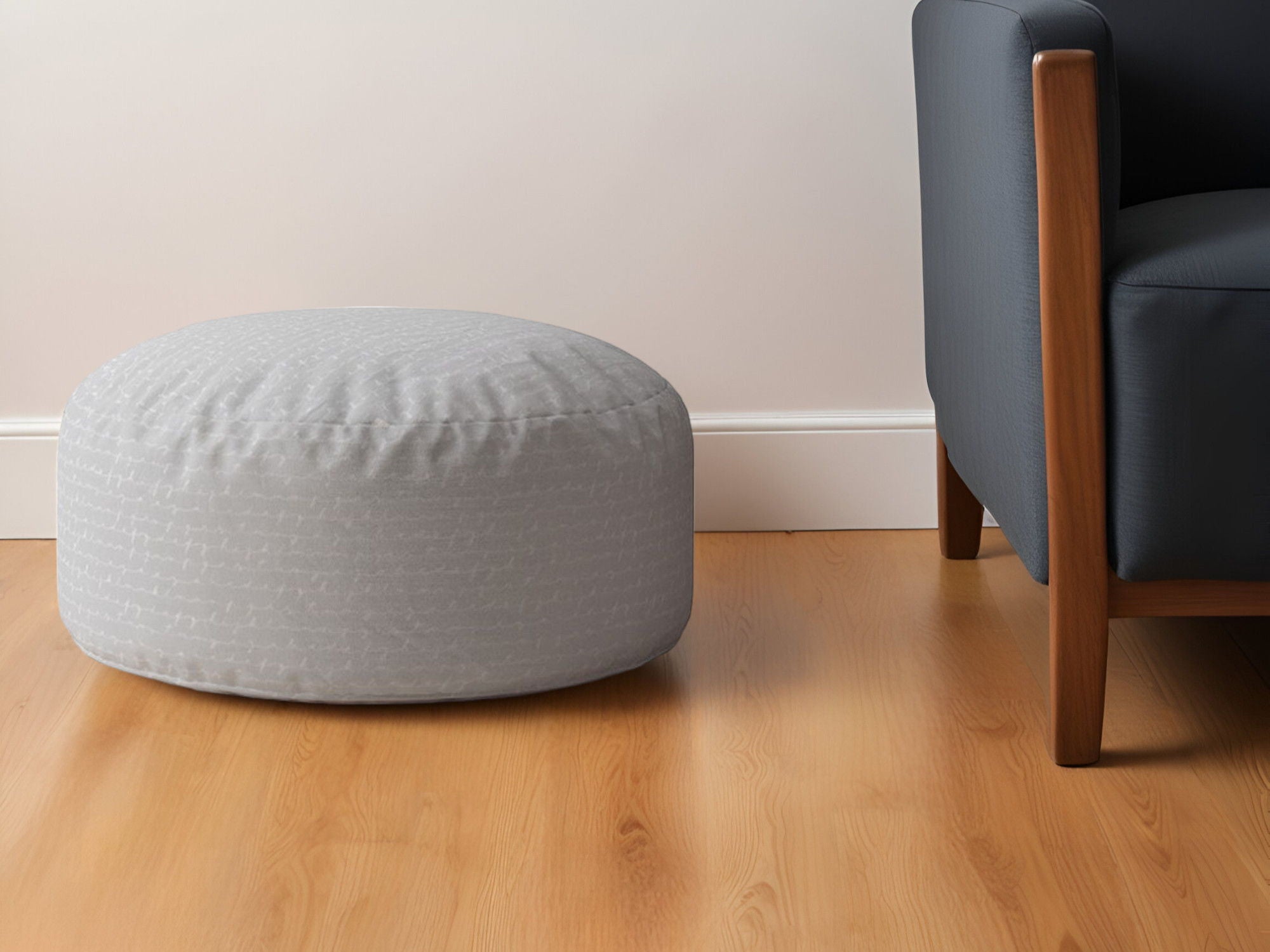 Cotton Round Pouf Ottoman - Gray