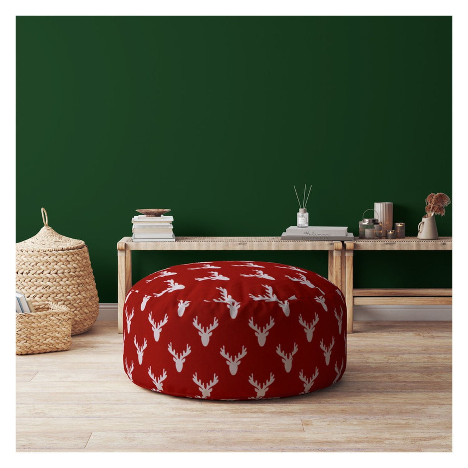 Cotton Round, Stag Pouf Ottoman - Red / White