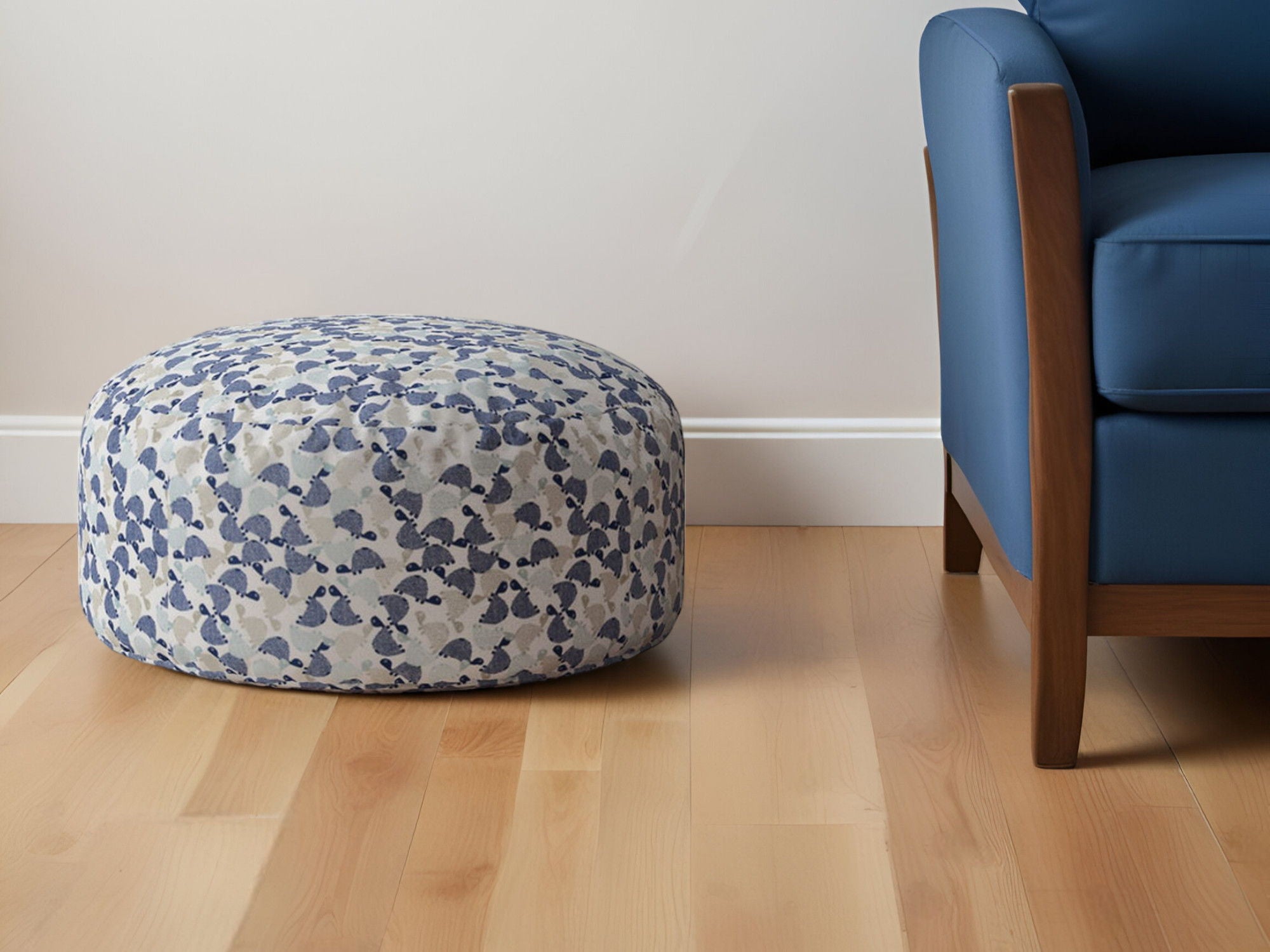 Cotton Round Turtle Pouf Ottoman - Beige