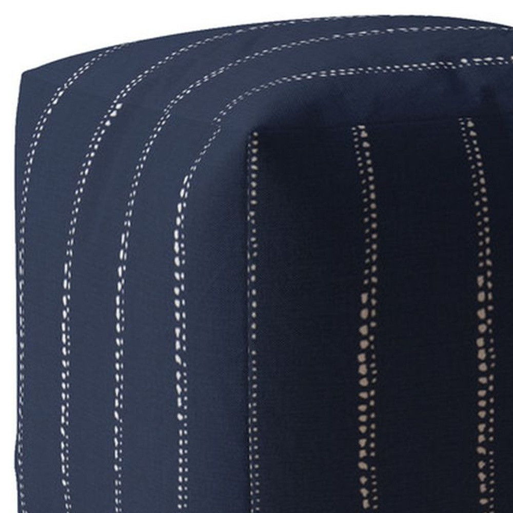Cotton Striped Pouf Cover - Blue