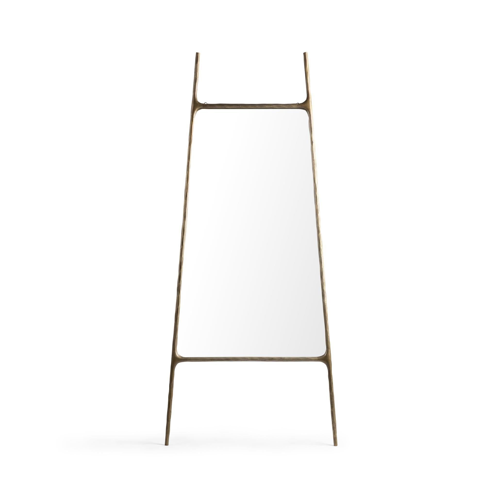 Add sculptural elegance to your space with this leaning floor mirror framed in hammered iron. The slender, organic silhouette feels both artistic and refined, bringing subtle texture and visual interest to any room. Imagine it resting effortlessly in a bedroom, dressing area, or living space, reflecting light while adding height and depth. Designed to feel light yet impactful, it offers a timeless accent with a modern, handcrafted edge.