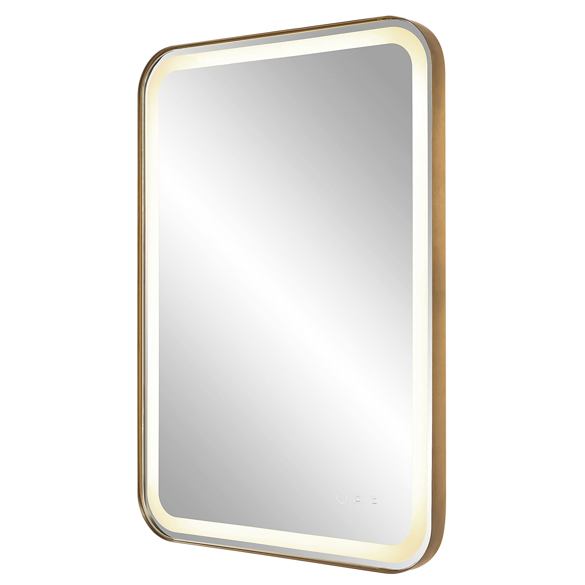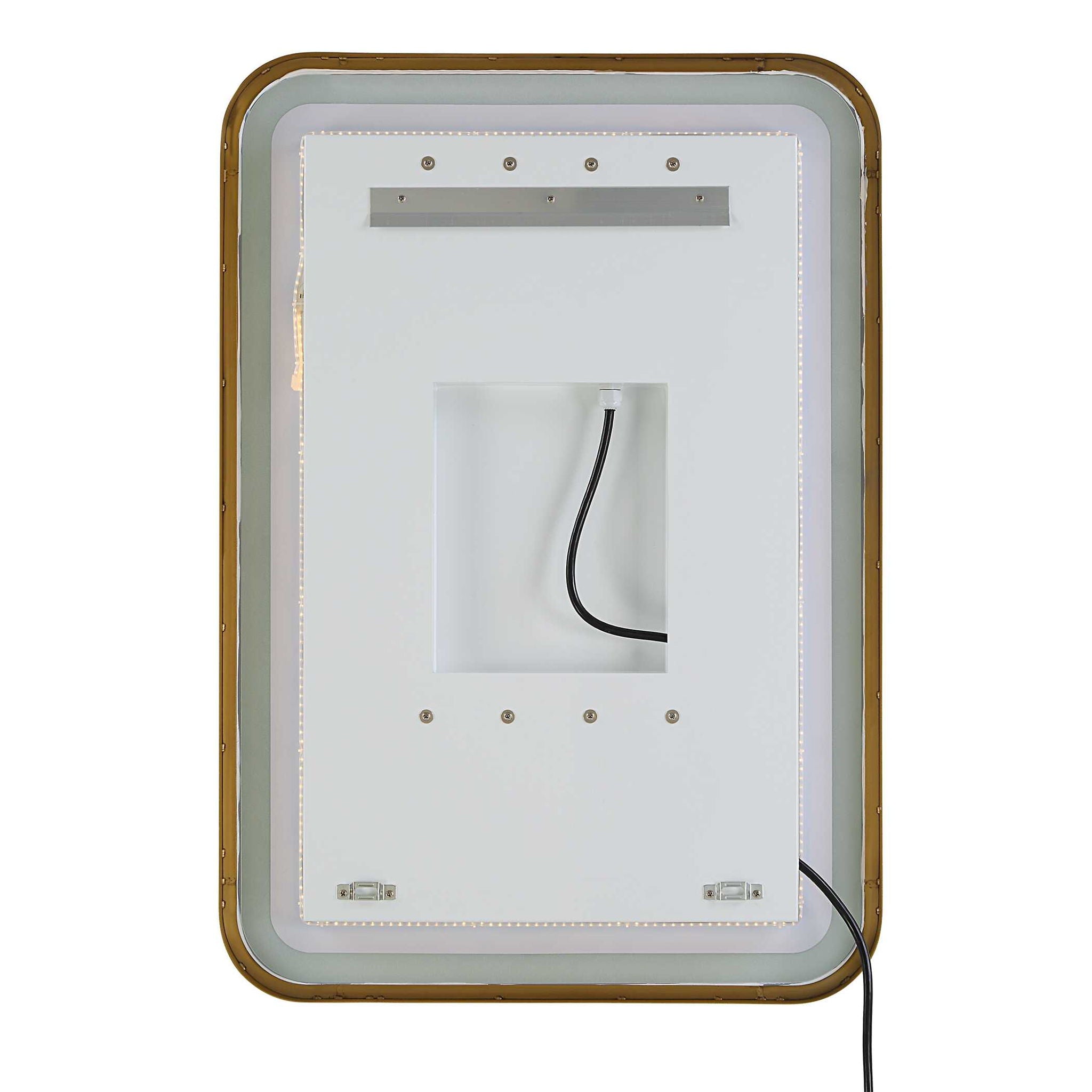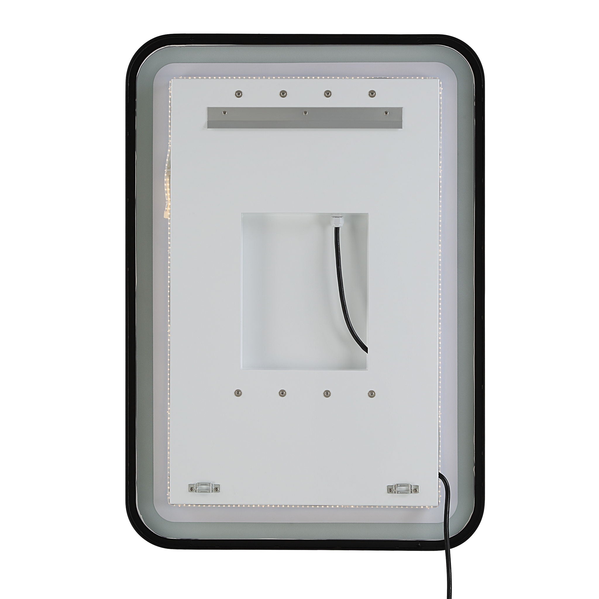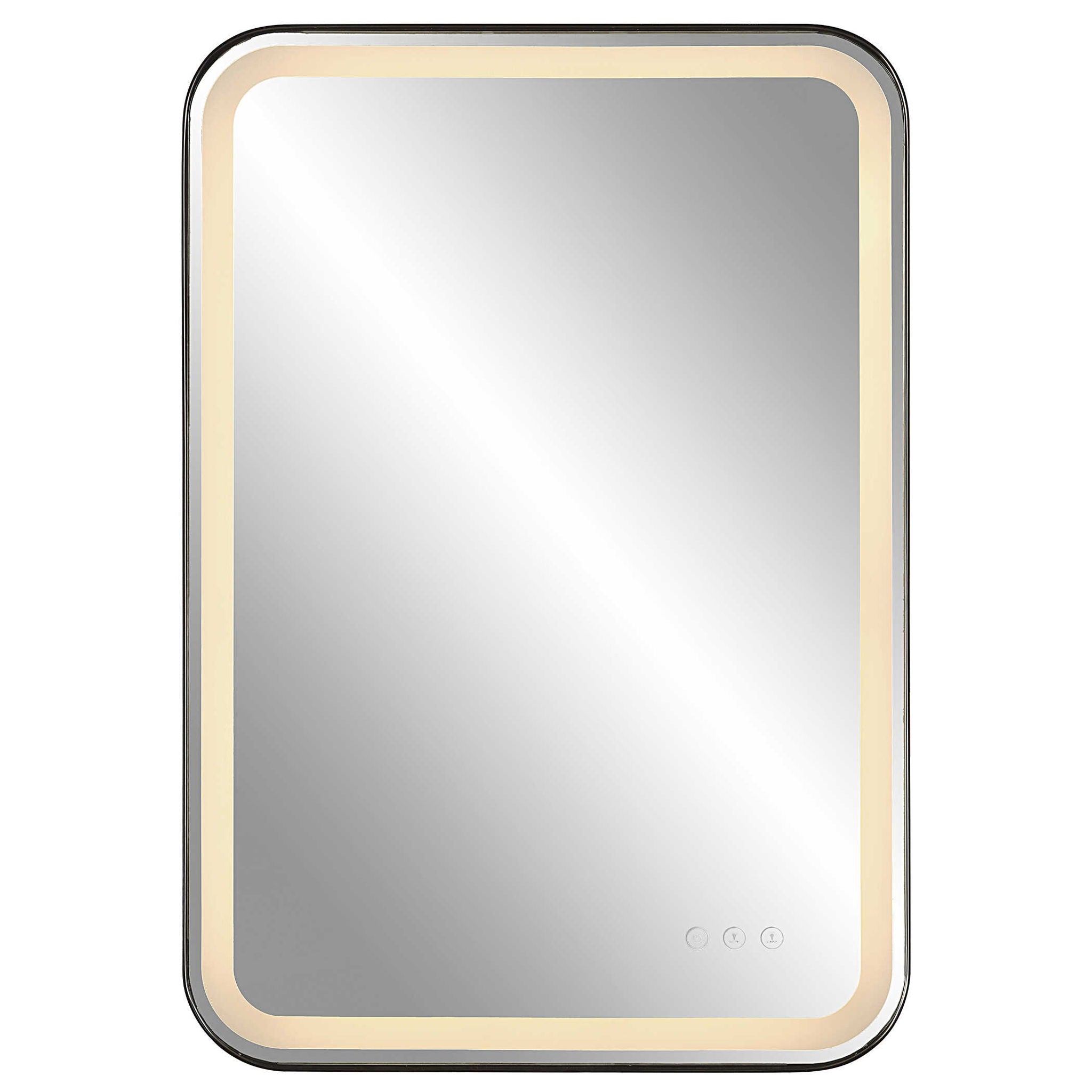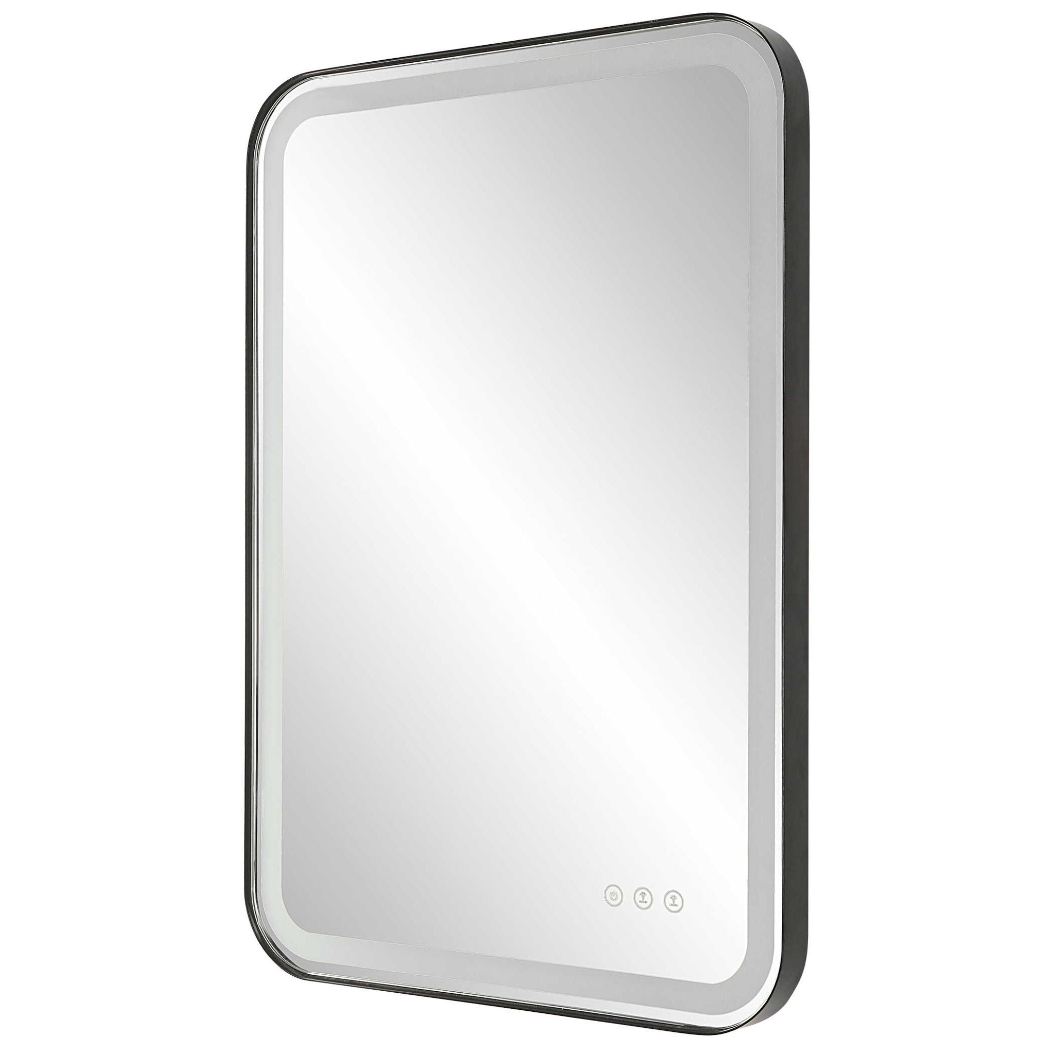 Versatile In Design, This Vanity Mirror Has Integrated LED Lighting That Illuminates Through The Frosted Strip In The Polished Edged Mirror. The Satin Black Metal Frame Is Off Set From The Wall To Allow Ambient Lighting From The Back. Easy To Use Touch Buttons Are Featured On The Bottom Right Of The Mirror With An On Off Function, Touch And Hold Kelvin Control From 2700k To 4000k, And Touch And Hold Brightness Control. LED Lights Rated At 40,000 Hours. Ships With Plug, But Can Be Hardwired Professionally.