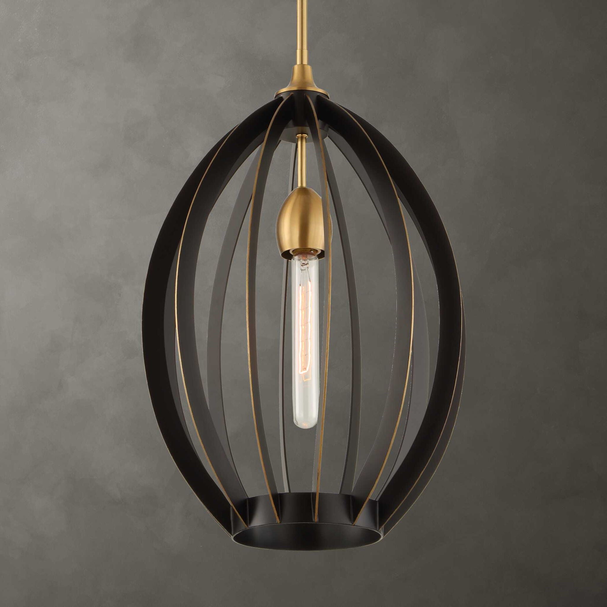 Darby - 1 Light Architectural Oval Pendant - Bronze / Black